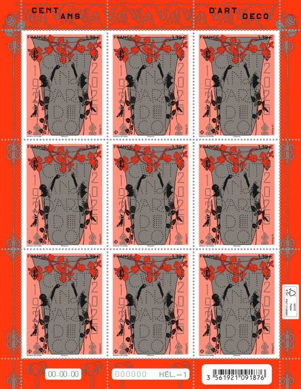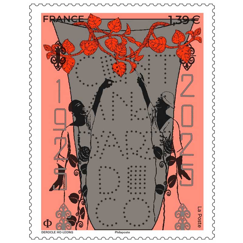 | Description | Emission d'un timbre et un souvenir philatélique à l'occasion du centenaire de l'Exposition internationale des arts décoratifs et industriels modernes. Une création par Lisa Derocle Ho-Léong, designer graphique diplômée en 2023 de l’École des Arts Décoratifs – PSL, en regard des collections du musée des Arts décoratifs. |