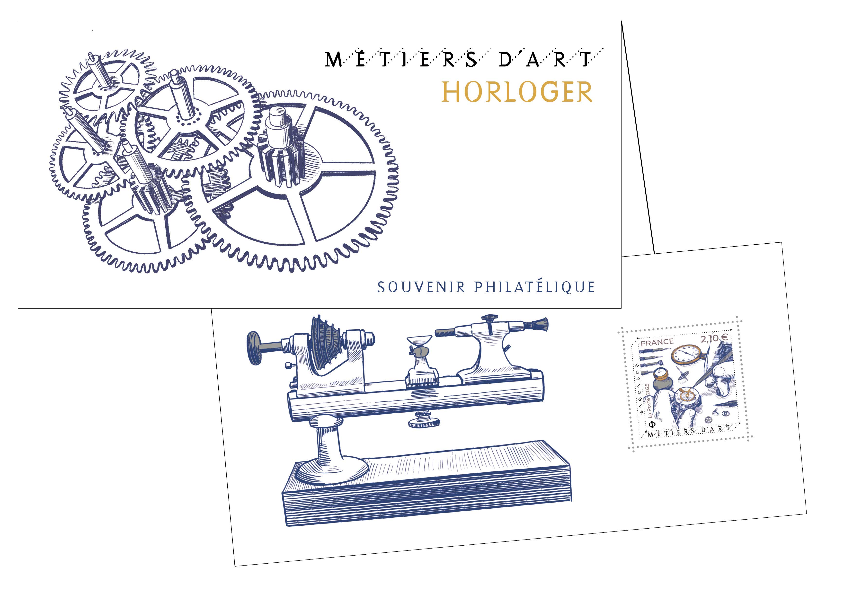 | Description | Émission d'un souvenir philatélique dans la série Métiers d’Art, initiée en 2016, c’est le savoir-faire de l’horloger qui est mis à l’honneur, il succède à celui du Mosaïste. |