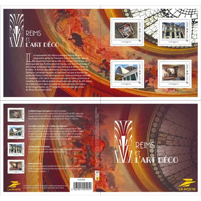 | Description | Emission d'un collector de quatre timbres sur la thématique Reims et l'art déco |