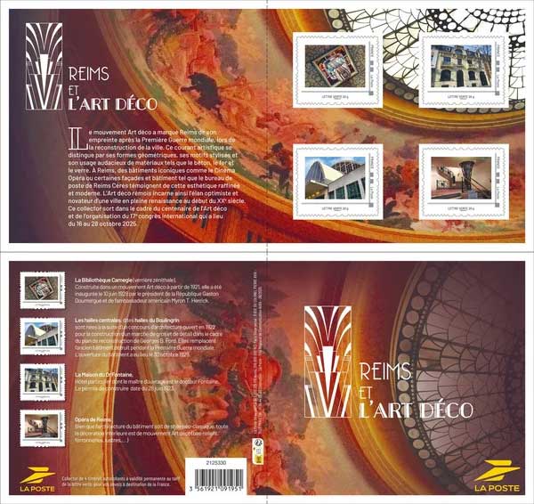 | Description | Émission d'un collector de quatre timbres sur la thématique Reims et l'art déco |