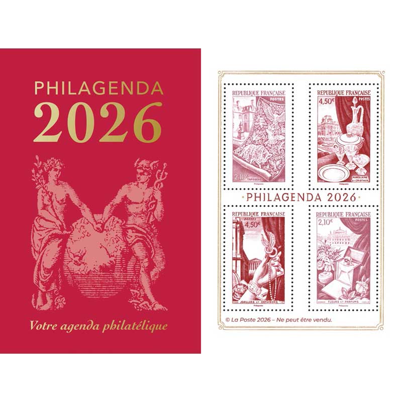 | Commentaire | Inclus dans le PHILAGENDA un bloc spécial de 4 timbres série "Productions françaises de luxe"- Tapisserie - Porcelaine et cristaux - Joaillerie et orfèvrerie - Fleurs et Parfums. format de l'agenda : 160 x 240 épaisseur 5.5 mm |