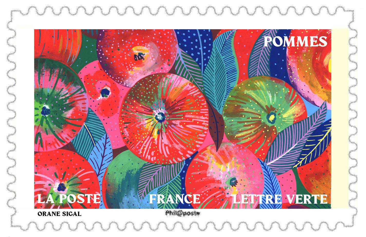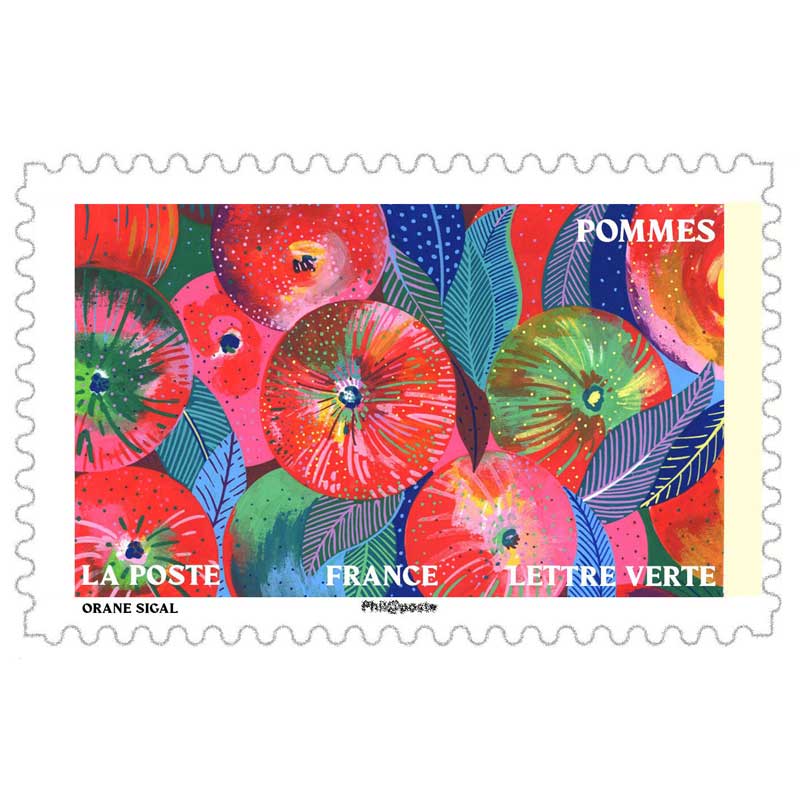 | Description | Provenant du carnet de douze timbres-poste, illustré par des fruits et des légumes d’automne qui apporteront une touche gourmande et colorée à vos courriers ! |