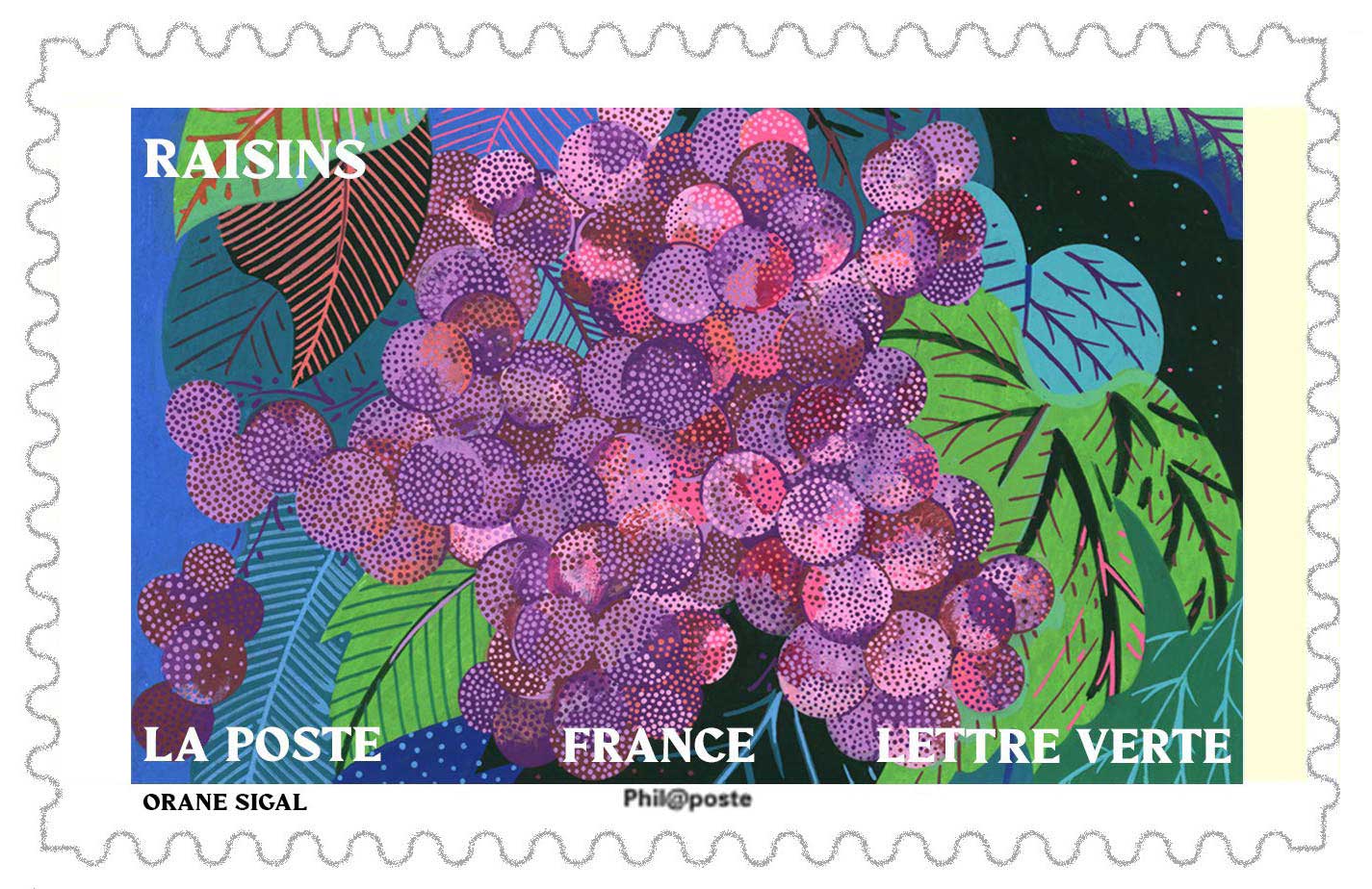 | Description | Provenant du carnet de douze timbres-poste, illustré par des fruits et des légumes d’automne qui apporteront une touche gourmande et colorée à vos courriers ! |