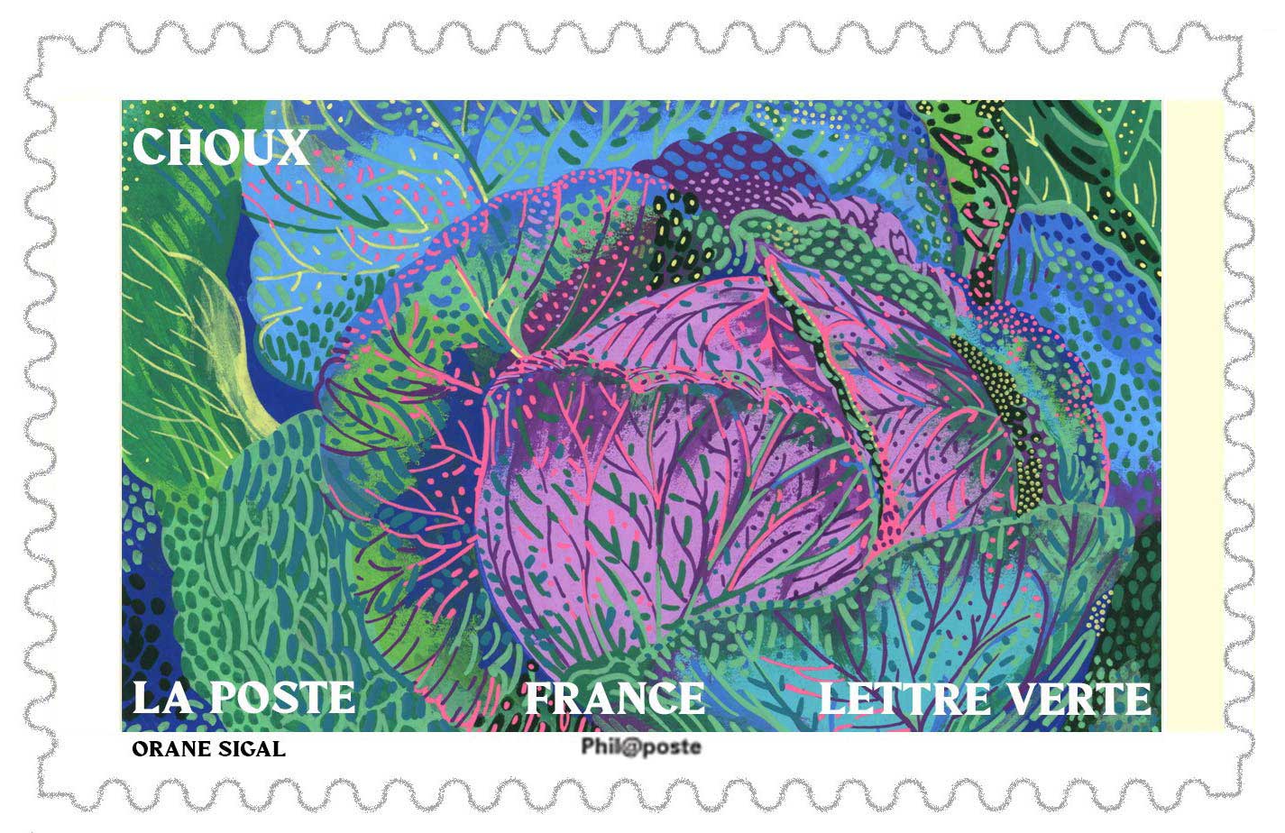 | Description | Provenant du carnet de douze timbres-poste, illustré par des fruits et des légumes d’automne qui apporteront une touche gourmande et colorée à vos courriers ! |