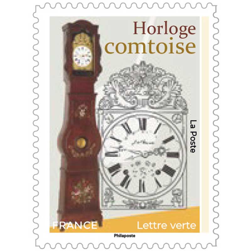 | Commentaire | On la trouve souvent dans un coin du salon, un peu comme un membre de la famille trop grand pour passer inaperçu : l’horloge comtoise. Avec son long corps en bois, son balancier qui se balance comme un pendule obstiné, elle a marqué des milliers de vies au fil des heures — et des repas du dimanche. Née au XVIIᵉ siècle dans les montagnes du Jura, elle est d’abord un artisanat local, presque confidentiel. Puis, au fil du XVIIIᵉ, elle conquiert les fermes, les cafés, les maisons bourgeoises. C’est qu’elle a du caractère, cette horloge : solide, fiable, capable de sonner le temps sans jamais faiblir. On devait remonter ses poids en tirant sur une chaîne. Petit rituel du soir ou du matin, presque intime : allez hop, on remonte le temps à la force du poignet. Les Comtois — gens malins — ont compris qu’ils tenaient là un trésor industriel. Ils en fabriquent des milliers, exportées jusqu’en Espagne, en Russie, même en Amérique du Sud ! On raconte que dans certaines cuisines, elle rythmait tout : le moment où l’on met la soupe à chauffer, celui où les enfants doivent filer se coucher. Son tic-tac régulier vibrait dans les murs, comme un souffle familier. Elle n’a pourtant rien d’un gadget. Sur son fronton, souvent décoré d’un motif en laiton, se glissent des symboles : des épis de blé, des colombes, des fleurs… Chaque foyer y projetait ses espoirs, ses saisons, sa fierté. Et puis il y avait son coup de cloche, franc, sonore, qui traversait la maison entière. Impossible de l’ignorer — même quand on aurait bien voulu dormir un peu plus. Aujourd’hui, elle semble parfois dépassée par la technologie, silencieuse face aux écrans qui brillent. Mais quand on la voit trôner encore, un peu audacieuse, on se dit qu’elle garde quelque chose que les machines modernes ont oubliée : le temps n’est pas qu’un chiffre, c’est une présence. Alors si un jour tu entends un vieux ding dans une maison jurassienne, écoute bien : c’est peut-être le passé qui te fait un clin d’œil. WikiTimbres |
