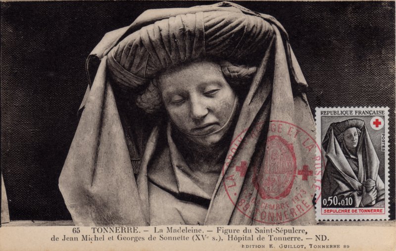 | Description | Au profit de la Croix-Rouge française. Sépulcre de l'Hôtel-Dieu, aussi appelé Vieil Hôpital, de Tonnerre (Yonne). Représentation d'un des sept personnages de la pathétique mise au tombeau (1454), l'une des plus anciennes d'Europe |