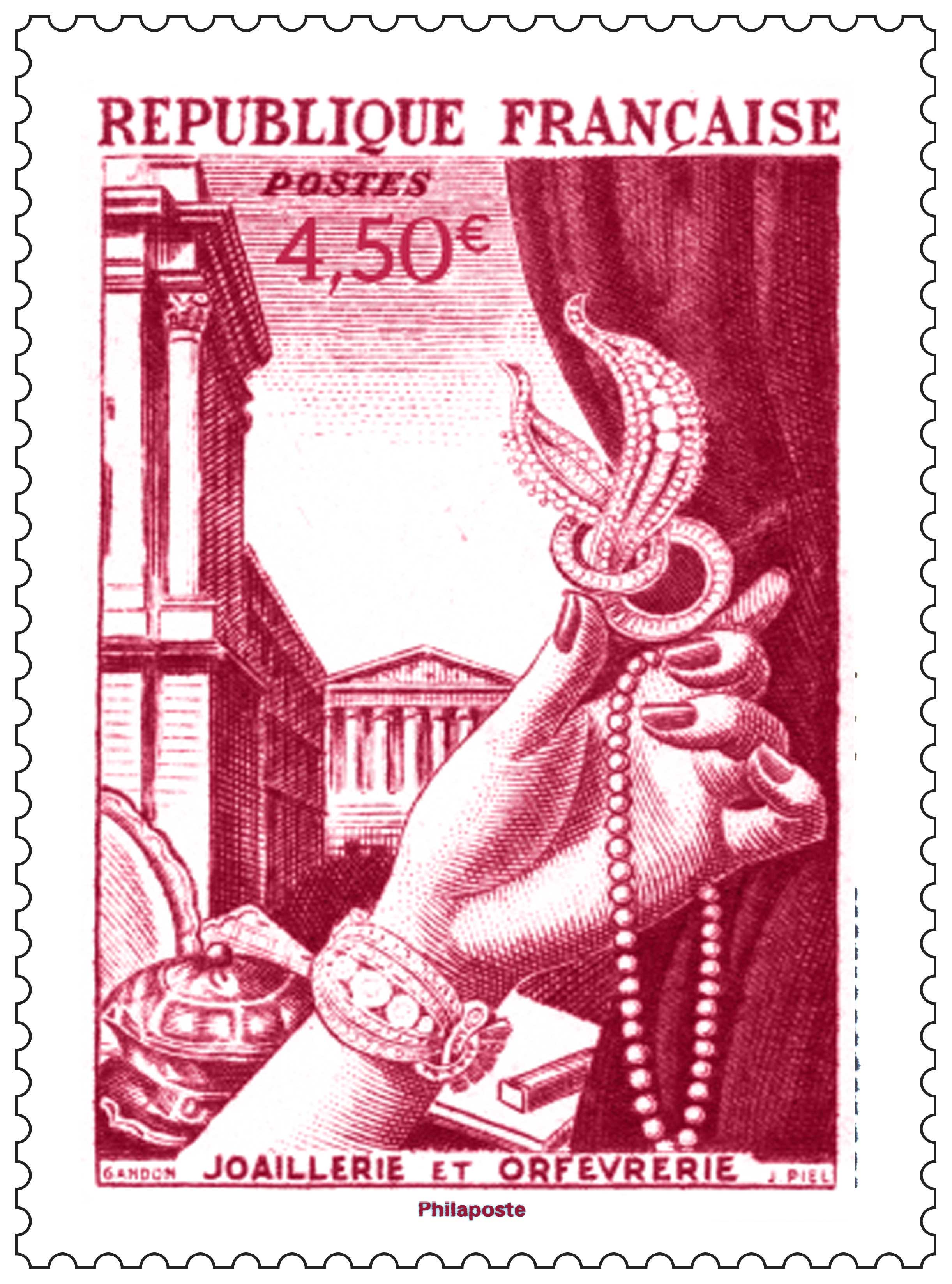 | Description | Provenant du bloc spécial de 4 timbres série "Productions françaises de luxe"- Tapisserie - Porcelaine et cristaux - Joaillerie et orfèvrerie - Fleurs et Parfums. |