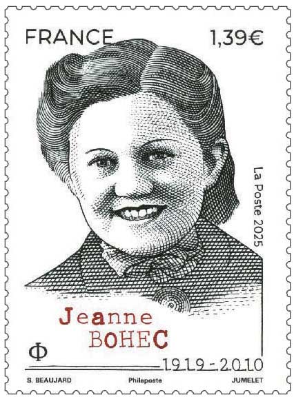 | Commentaire | Personne ne naît « dynamite »… mais Jeanne Bohec s’en est rapprochée. Née en 1919 à Brest, avec le cri du vent et le sel de l’Atlantique en fond sonore, elle n’imaginait pas que sa vie deviendrait une aventure explosive — au sens propre comme au sens figuré. Elle voulait être chimiste, travailler tranquillement dans un laboratoire. Les années 30 la voient étudier sérieusement, le nez dans ses éprouvettes. Puis 1940 renverse tout. La France occupée, les nazis partout, et Jeanne qui décide de dire non. Elle quitte Brest, rejoint Londres en 1941, et là — changement de décor complet — elle entre au Special Operations Executive. Son job ? Apprendre l’art redoutable du sabotage. Elle manipule explosifs, minuteries, détonateurs, avec la précision d’une horloger… mais en beaucoup plus dangereux. On lui donne même un surnom : « la femme à la dynamite ». Pas très subtil, mais plutôt fier. En février 1944, elle est parachutée en France, au beau milieu d’une nuit glaciale. On imagine le choc : une chute dans le noir, puis les bottes qui s’enfoncent dans une prairie encore gelée. À peine débarquée, elle forme des groupes de résistants en Bretagne : fabriquer des bombes artisanales, faire sauter des rails, couper des communications. Les trains allemands, censés contrôler la région, se retrouvent soudainement bloqués. Jeanne se déplace à vélo — oui, avec de la dynamite sur le porte-bagages — le tout avec un sang-froid qui ferait pâlir James Bond. Quand la Libération arrive, elle n’a que 25 ans. Et pourtant une guerre entière déjà derrière elle. Après le conflit, elle continue sa carrière scientifique et s’engage pour les droits des femmes, convaincue qu’il faut se battre partout, pas seulement sur les champs de bataille. Je me demande toujours : dans une vie ordinaire, qu’est-ce qui réveille le courage extraordinaire ? Peut-être un mélange de hasard, de convictions, ou juste cette petite voix qui dit « vas-y » quand tout semble perdu. WikiTimbres |