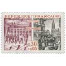 | Commentaire | En 1964, pour les vingt ans de la Libération, la France décide de ne pas laisser le souvenir s’effriter comme un vieux papier jauni. À travers une série de timbres, elle rend hommage à deux forces qui, dans l’ombre et la douleur, ont tenu debout l’âme du pays : la Résistance et la Déportation. Le premier timbre nous ramène au Jardin du Luxembourg, où s’élève une statue discrète mais bouleversante, née du ciseau de Watkin, lui-même ancien résistant. Deux jeunes figures : l’une debout, l’autre qui s’effondre... Et ce bras, tendu comme un ultime refus de la chute. Ce monument n’est pas juste une pierre froide : c’est un cri silencieux, une main tendue à ceux qui, en 1944, ont choisi de mourir plutôt que de trahir. (Tu t’es déjà demandé ce que c’est, "ne pas abdiquer" ?) À côté, un autre timbre nous cloue sur place : la Déportation. Difficile d’imaginer l’horreur derrière un simple mot. Camps, barbelés, miradors. Et pourtant, au milieu de cette mécanique de mort, il restait une étincelle : l’espoir. Ceux qui sont revenus — maigres, brisés, mais vivants — portaient en eux plus qu’une victoire, ils portaient une leçon. Même l’enfer n’a pas pu tout détruire. Cette série commémorative n’est pas là pour qu’on se glorifie ou qu’on pleure en boucle. Elle est là, discrètement posée sur nos lettres, pour qu’on se souvienne. Que chaque jeune, chaque passant, se rappelle que la liberté a eu, et aura peut-être encore, un prix. Un prix qu’il faut regarder en face, même si ça dérange. WikiTimbres |