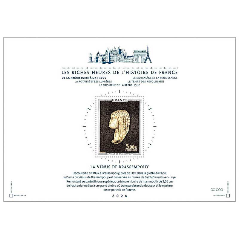 | Description | Proveant de l'émission de 11 feuillets qui vous propose de découvrir ou de redécouvrir, au travers de cette nouvelle édition répartie sur cinq ans, des timbres d’exception retraçant l’Histoire de France contée par la philatélie. |
