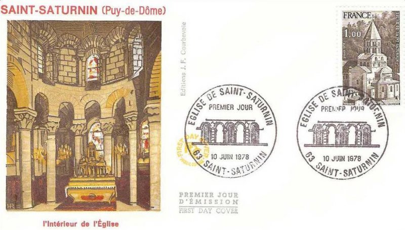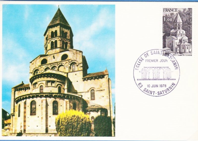 | Commentaire | L'église Notre-Dame est une église de style roman auvergnat située à Saint-Saturnin, dans le département français du Puy-de-Dôme et la région Auvergne-Rhône-Alpes. Elle est la plus petite, la plus sobre et la plus tardive des cinq églises dites "majeures" d'Auvergne, au nombre desquelles figurent : la basilique Notre-Dame-du-Port à Clermont-Ferrand, l'église Saint-Austremoine d'Issoire, la basilique Notre-Dame d'Orcival et l'église de Saint-Nectaire