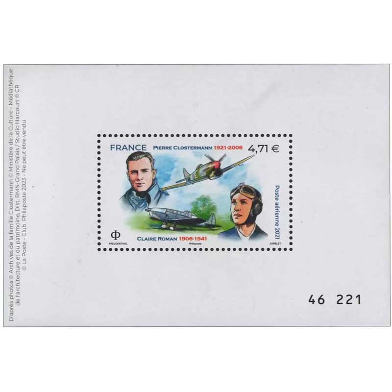 | Description | Réedition du timbre "Pierre CLOSTERMANN 1921 - 2006 Claire ROMAN 1906 - 1941" offert par le club philaposte aux abonnées |