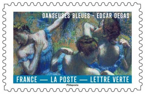 | Description | Provenant du carnet de douze timbres-poste où le bleu, couleur universelle qui symbolise le ciel, l’eau, la nuit et l’infini, a inspiré de nombreux artistes de toutes les époques et courants artistiques. |