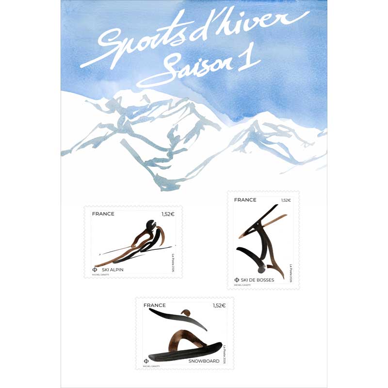 Ce timbre n'est pas encore émis, le visuel et les infos peuvent être erronés.| Description | Émission d'un bloc composé de 3 timbres sur les Sports d’hiver Saison 1, un bloc par an sera émis jusqu’au Jeux d’hiver de 2030 qui se dérouleront dans les Alpes françaises. |