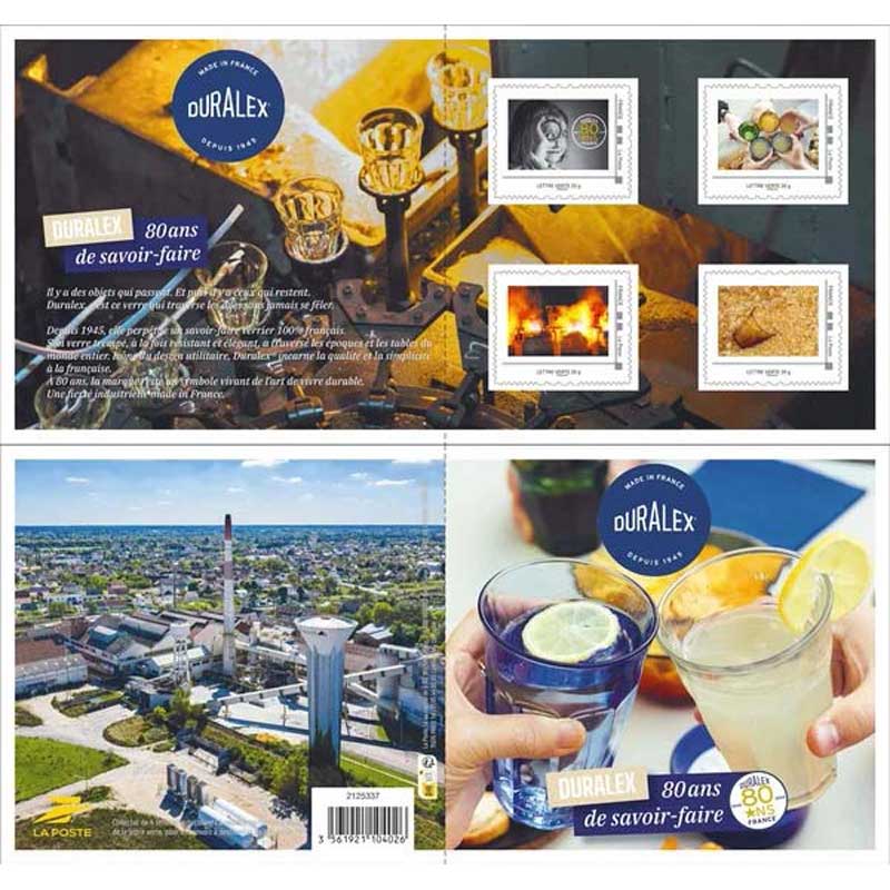 | Description | Émission d'un collector de quatre timbres sur Duralex - Lettre verte |
