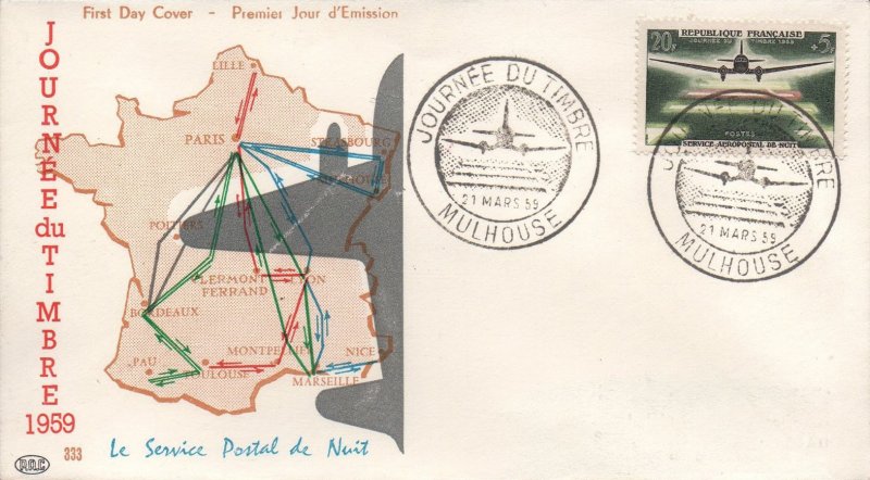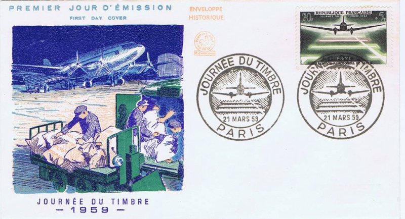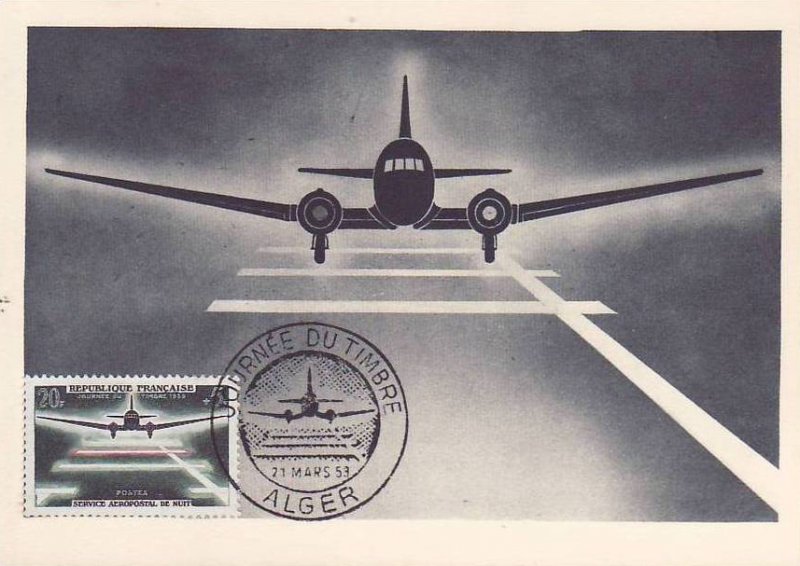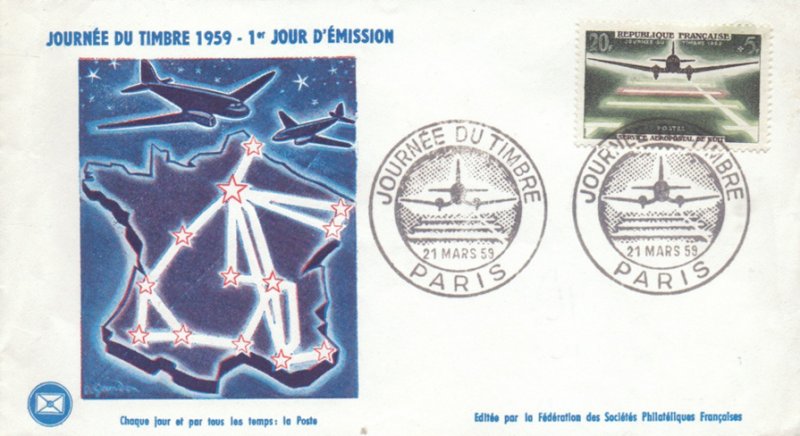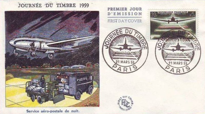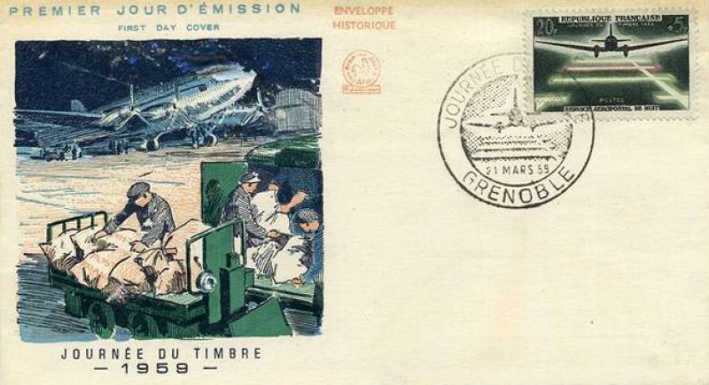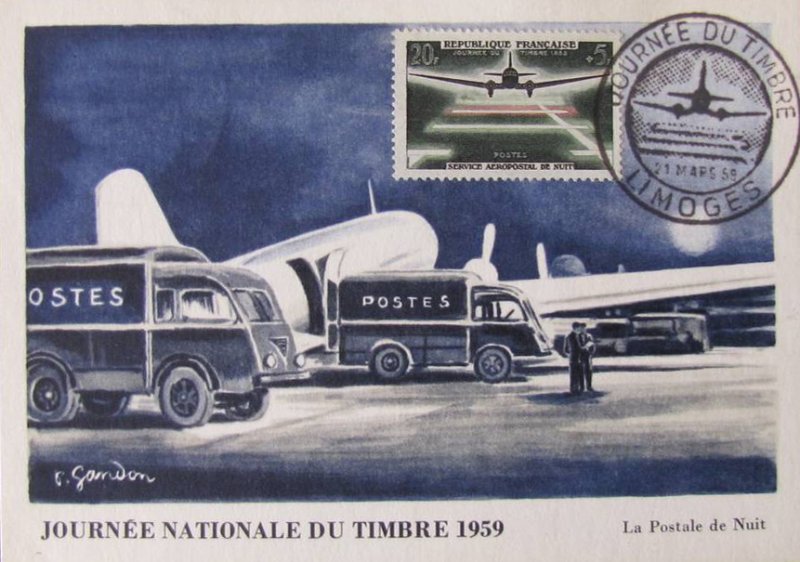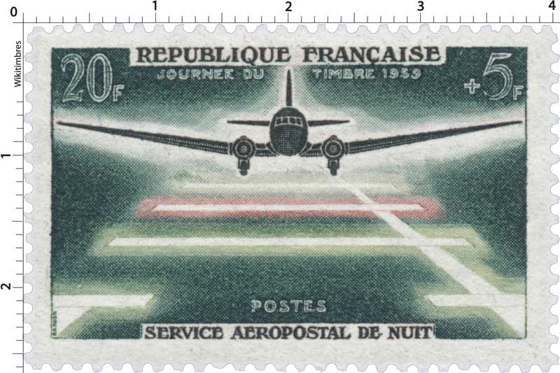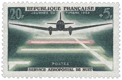| Description | Journée du timbre 1959 et 20e anniversaire du service aéropostal de nuit |