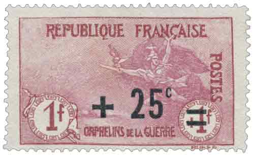 | Commentaire | La Marseillaise de Rude - Orphelins de la Guerre. Le timbre 25 c sur 1 f + 1 f « La Marseillaise à Paris », émis le 1er septembre 1922, appartient à la seconde série des timbres des Orphelins de la guerre surchargés, réalisés à partir des planches originales de 1917. Conçu par Louis Dumoulin et gravé par Léon Henri Ruffé, ce timbre reprend l’imposante composition patriotique mettant en scène La Marseillaise, allégorie du courage et de l’élan national pendant la Première Guerre mondiale. Imprimé en typographie, dentelé 13½ × 14, et tiré en feuilles de 75 timbres, il se distingue par sa teinte carmin, typique de cette valeur élevée. La surcharge « 25 c » ajuste le tarif postal tout en maintenant la surtaxe au profit des orphelins de guerre et des Pupilles de la Nation, dans l’une des séries caritatives les plus emblématiques de la période. Retiré de la vente le 31 août 1934, ce timbre occupe une place importante dans les collections spécialisées grâce à son visuel fort, sa symbolique patriotique et son statut de timbre de charité parmi les plus recherchés de la série. |