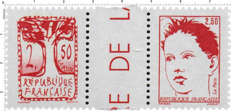 | Commentaire | Les feuilles de 100 timbres-poste sont divisées en deux panneaux de 50 timbres-poste. Le panneau de gauche représentant un timbre différent de celui du panneau de droite. Existe non surchargé accidentellement de bandes phosphorescentes. |