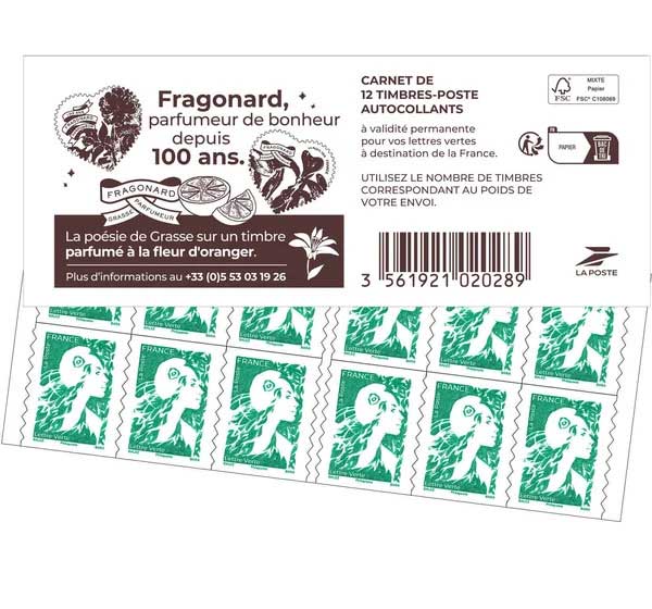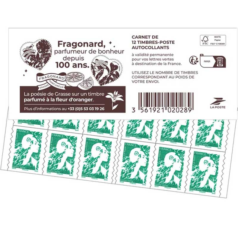 | Description | Carnet guichet - de 12 timbres autoadhésifs pour lettres vertes de 20 g |
