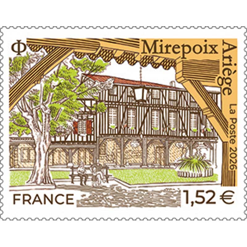 Ce timbre n'est pas encore émis, le visuel et les infos peuvent être erronés.| Description | Emission d'un timbre de la série patrimoine et tourisme sur Mirepoix située dans l’Ariège. |