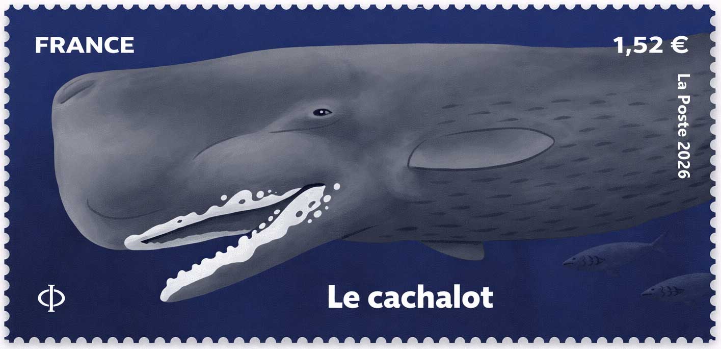 | Description | Provenant du bloc de quatre timbres et un souvenir philatélique dédiés aux cétacés. Comment ne pas songer alors à Moby Dick, la plus mythique des baleines ? |