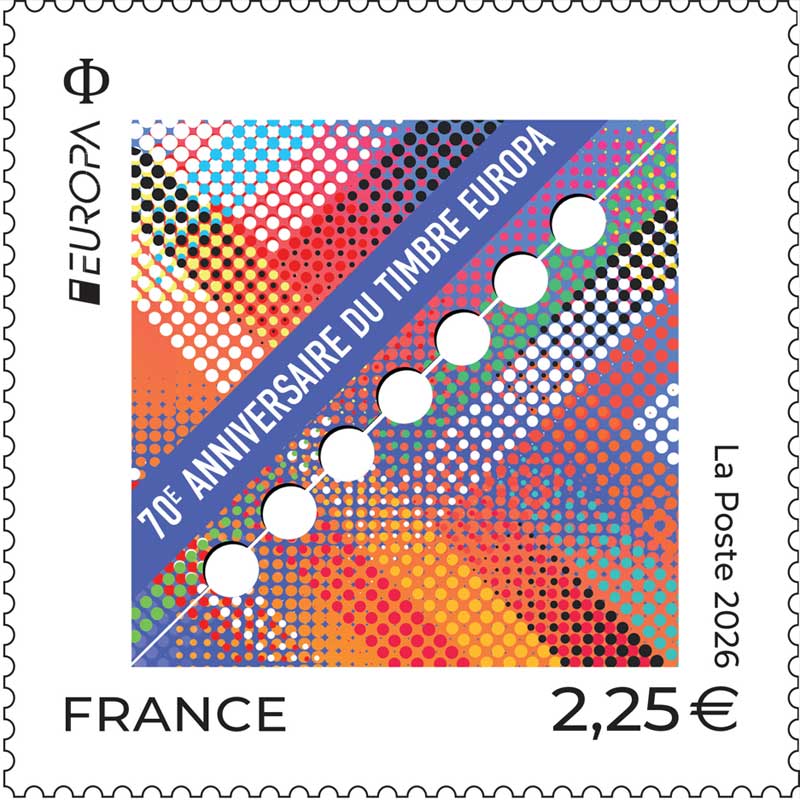 Ce timbre n'est pas encore émis, le visuel et les infos peuvent être erronés.| Description | Émission d'un timbre à l’occasion des 70 ans du timbre EUROPA, célébrant une nouvelle fois le rassemblement des peuples autour de valeurs partagées et inspirant les philatélistes à travers le monde. |