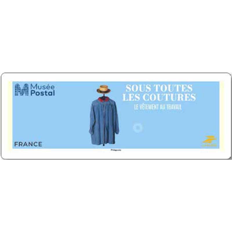 | Description | Émission d'une vignette LISA "Sous toutes les coutures - Le vêtement au travail », présentée au Musée de La Poste à Paris." |