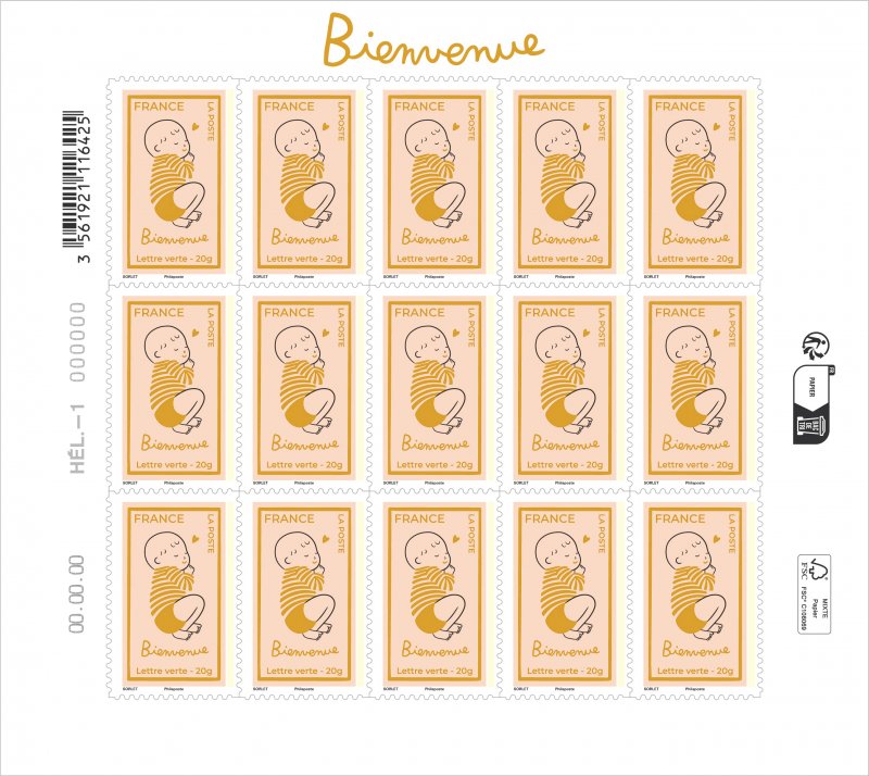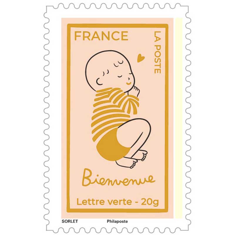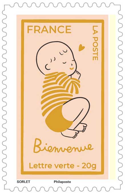 | Commentaire | Un nouveau-né arrive toujours dans le monde avec un silence particulier autour de lui, comme si tout s’arrêtait une seconde pour lui laisser de la place. C’est cette sensation très douce que La Poste a choisi de célébrer avec l’émission « Bienvenue (bébé) », mise en circulation le 4 mai 2026. L’image retenue est celle d’un nourrisson endormi, enveloppé dans une atmosphère paisible, presque suspendue. Une manière simple d’évoquer ce moment si familier : les premiers jours d’une vie, lorsque tout semble fragile et pourtant incroyablement puissant. Depuis longtemps, les naissances sont des événements que les familles aiment annoncer et partager. Avant même l’apparition des réseaux sociaux ou des messages instantanés, les cartes de naissance faisaient déjà voyager la nouvelle dans toute la famille. Au XIXᵉ siècle, avec le développement du courrier postal en Europe, ces annonces sont devenues une véritable tradition sociale, accompagnées parfois d’illustrations délicates ou de petits symboles porte-bonheur. La création de cette émission est signée par l’illustratrice française Agathe Sorlet, installée à Bordeaux et diplômée de l’École des Gobelins. Son univers graphique est reconnaissable entre tous : lignes noires simples, couleurs franches et un regard très tendre posé sur les moments du quotidien. Devenue mère elle-même, elle puise largement dans cette expérience intime pour nourrir son travail artistique. Ses dessins capturent souvent ces instants minuscules que l’on oublie presque aussitôt : un regard, un geste, un sommeil paisible dans les bras d’un parent. En choisissant de consacrer une création à la naissance, La Poste s’inscrit dans une longue tradition culturelle. Dans de nombreux pays européens, les premières représentations de nourrissons apparaissent déjà dans les arts populaires du XVIIIᵉ siècle, souvent associées à des messages de fécondité et de continuité familiale. L’arrivée d’un enfant reste l’un des rares événements capables de réunir instantanément plusieurs générations autour d’une même joie. Peut-être est-ce pour cela que ces images continuent de nous toucher. Parce qu’elles rappellent, tout simplement, qu’une vie commence toujours par un sommeil tranquille… et par une promesse. Article rédigé pour WikiTimbres |
