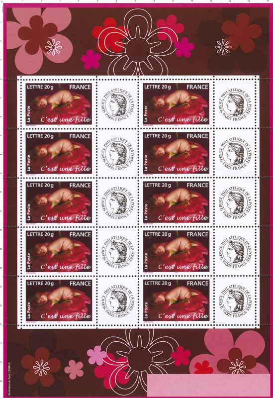 | Description | Timbre pour naissances. C'est une fille. Type du T.-P. de même date. Avec vignette Cérès |