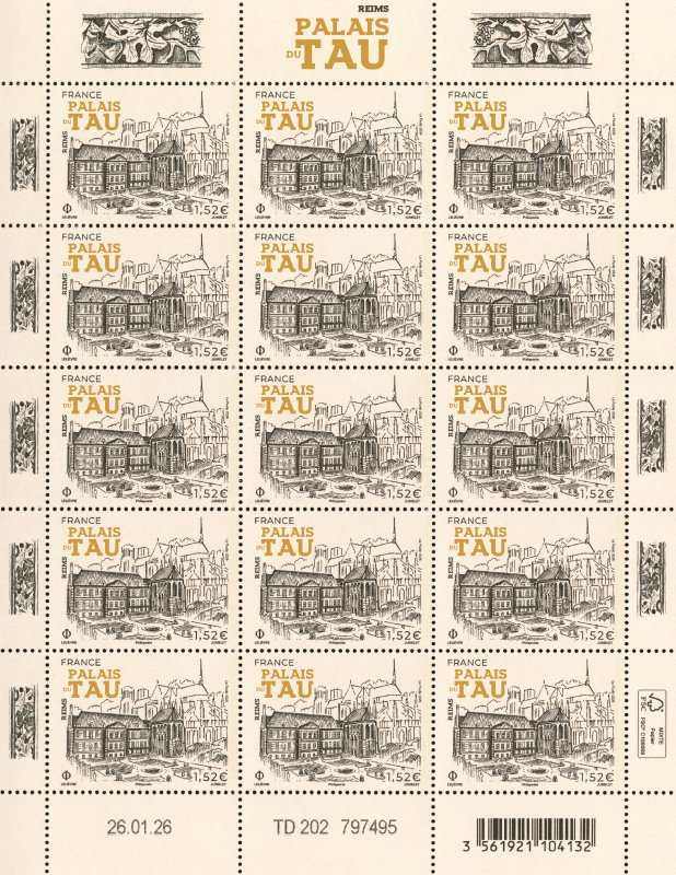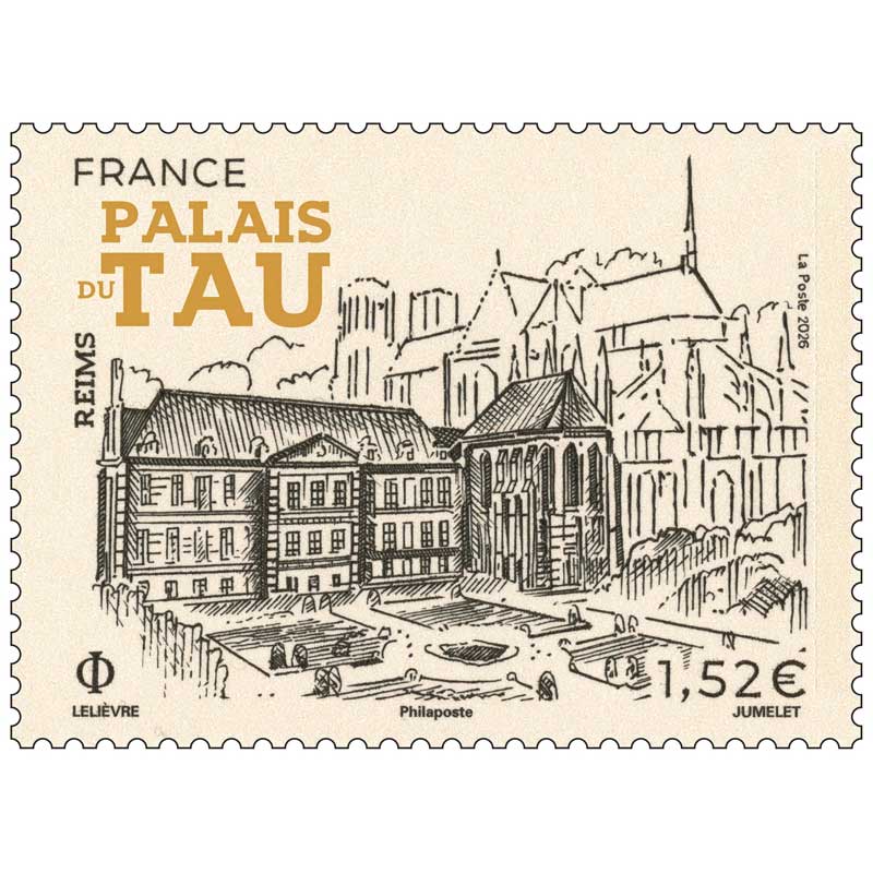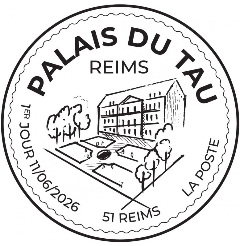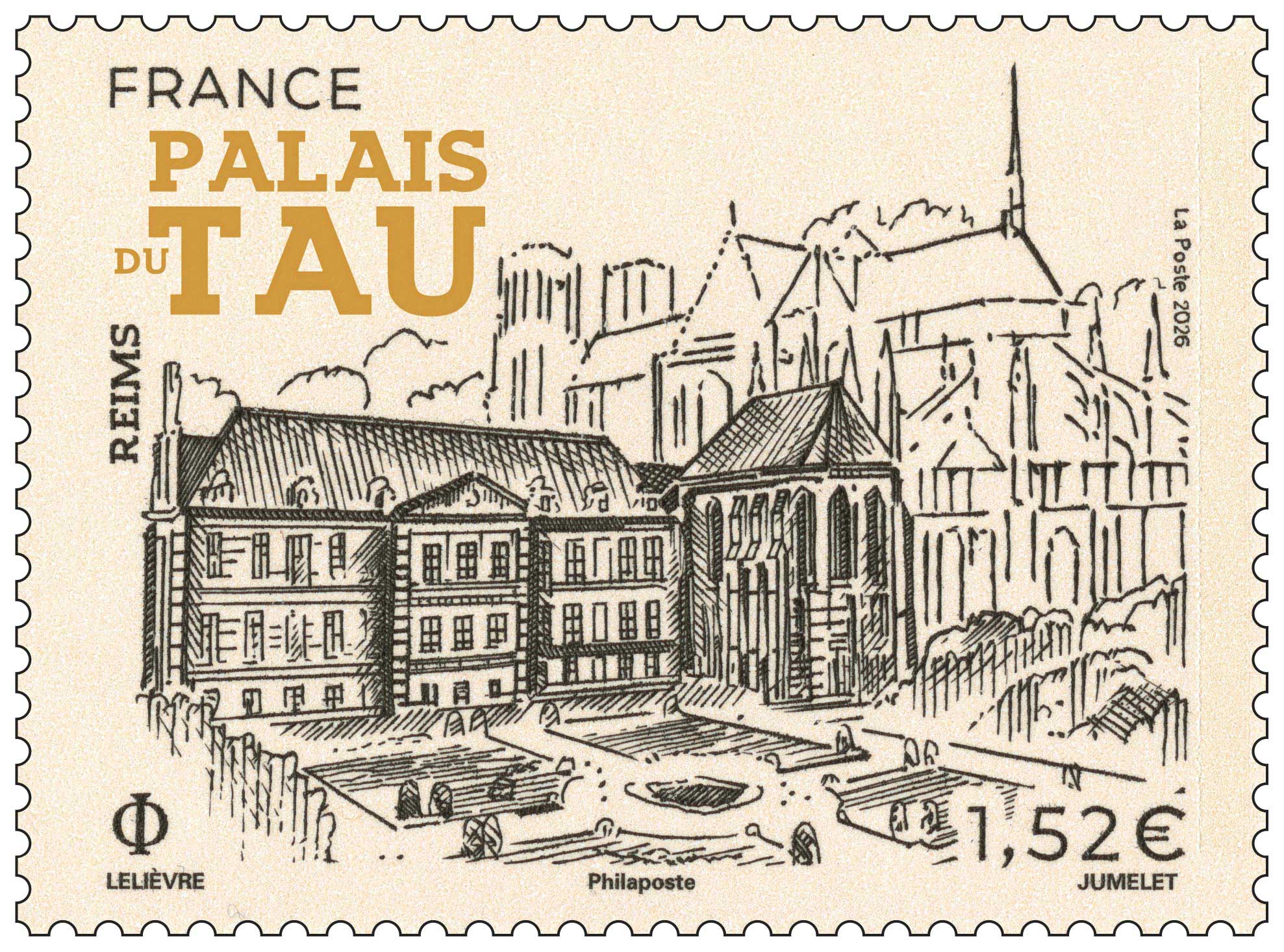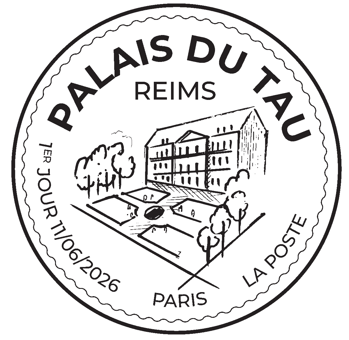 Ce timbre n'est pas encore émis, le visuel et les infos peuvent être erronés.| Description | Émission d'un timbre sur le Palais du Tau à Reims, écrin du futur Musée des Sacres. |