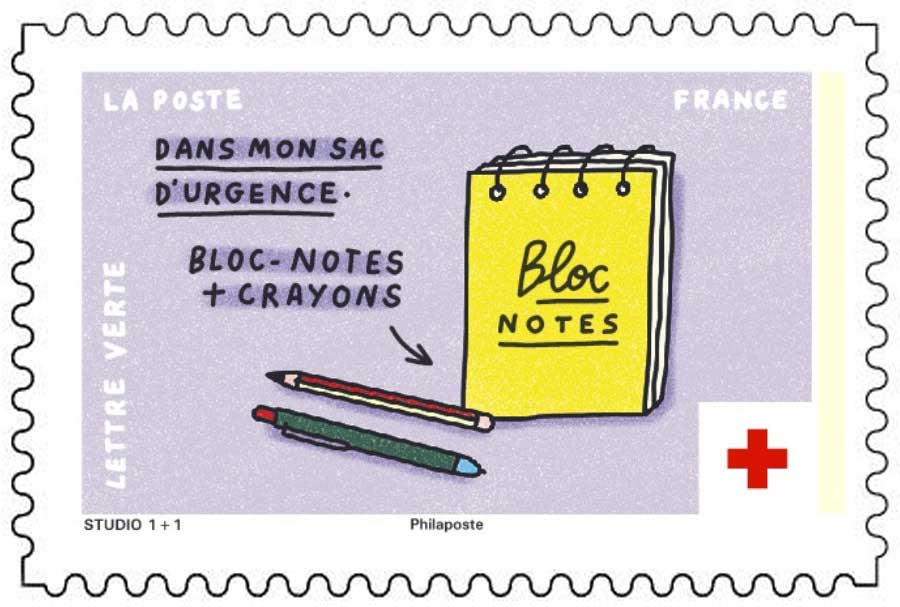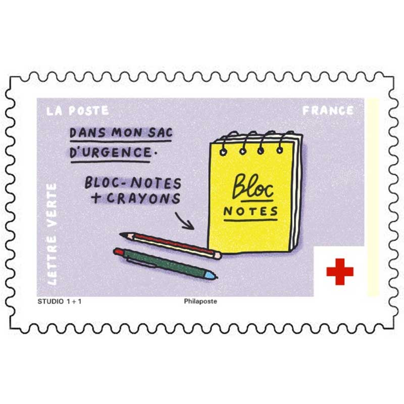 | Description | Provenant du carnet de 10 timbres-poste dédié au sac d’urgence. Inondation, tempête, incendie, séisme, accident industriel, pandémie... parce qu'une crise majeure peut bouleverser la vie quotidienne il faut se préparer à faire face. La Croix-Rouge française encourage chaque foyer à préparer un sac d’urgence. |