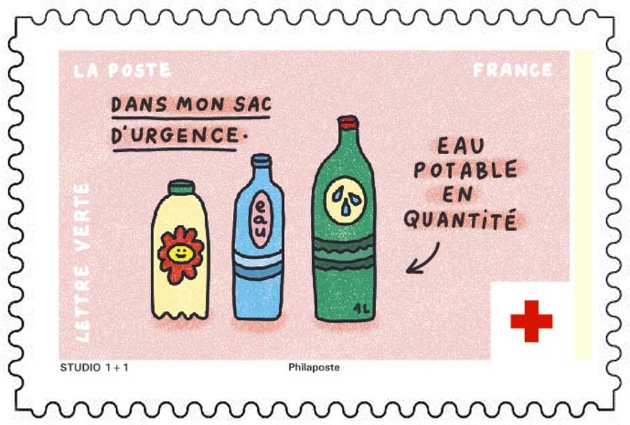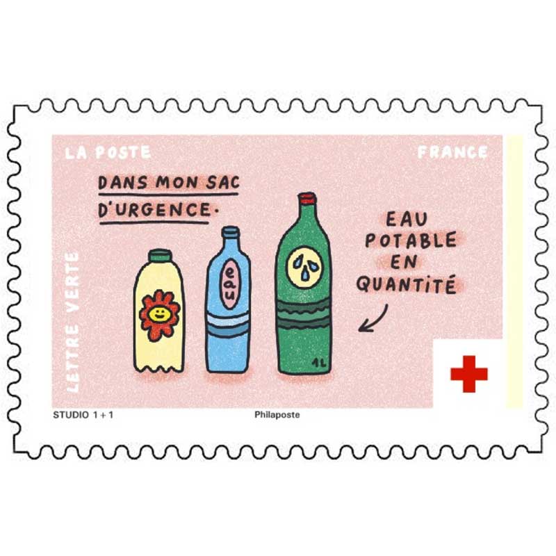 | Description | Provenant du carnet de 10 timbres-poste dédié au sac d’urgence. Inondation, tempête, incendie, séisme, accident industriel, pandémie... parce qu'une crise majeure peut bouleverser la vie quotidienne il faut se préparer à faire face. La Croix-Rouge française encourage chaque foyer à préparer un sac d’urgence. |