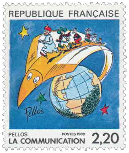 | Commentaire | Ce timbre est issu du carnet « La communication par douze auteurs de la bande dessinée française », émis au début de l’année 1988 dans un contexte où la bande dessinée a définitivement conquis une reconnaissance culturelle, pédagogique et universitaire. L’initiative s’inscrit dans le prolongement du rôle croissant d’Angoulême comme capitale de la bande dessinée, renforcé par le succès du Festival international et par l’émergence de formations dédiées à cet art narratif. À travers ce carnet, la politique postale française choisit de faire dialoguer philatélie et neuvième art, en confiant à plusieurs auteurs majeurs le soin d’illustrer le thème de la communication, notion centrale à la fois pour la Poste et pour la bande dessinée elle-même, fondée sur la transmission du récit par l’image et le texte. Ce timbre, dessiné par René Pellos, s’inscrit dans une trajectoire artistique marquée par l’histoire de la bande dessinée populaire française, depuis les illustrés du début du XXe siècle jusqu’aux grandes séries d’après-guerre. Il renvoie à un médium longtemps considéré comme mineur, mais progressivement reconnu pour sa capacité à raconter, expliquer et transmettre, que ce soit auprès de la jeunesse ou d’un public adulte. L’émission de 1988 intervient à un moment où la bande dessinée est pleinement intégrée aux réflexions sur l’éducation, l’histoire et la société, rejoignant ainsi les préoccupations institutionnelles liées à l’information et à la communication. Ce timbre témoigne de cette convergence entre expression artistique et mission de service public, en valorisant un langage graphique devenu un outil majeur de diffusion culturelle et de compréhension du monde contemporain au sein des timbres de France. Article rédigé pour WikiTimbres |
