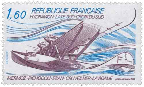 | Description | Hydravion Laté 300 Croix du Sud. Jean Mermoz (né à Aubenton) est aux commandes et l'équipage qui est composé d'Alexandre Pichodou, second pilote, Jean Lavidalie, mécanicien naviguant, Henri Ézan, navigateur et Edgar Cruveilher, radiotélégraphiste |