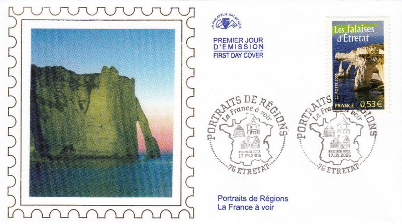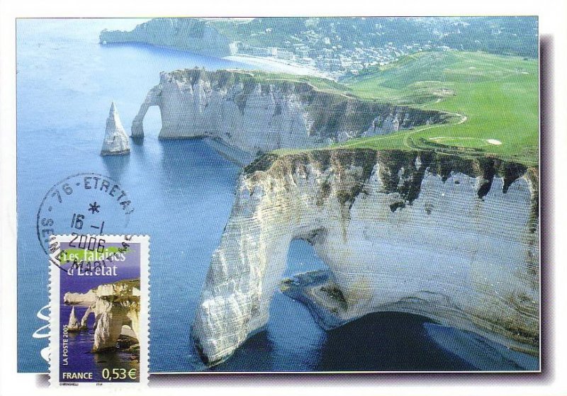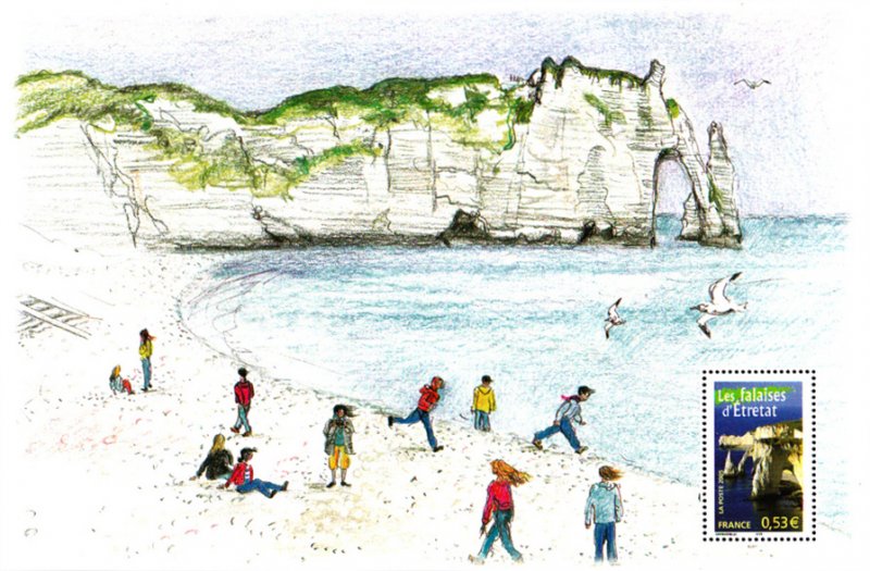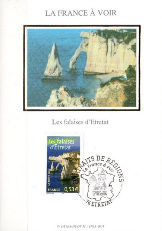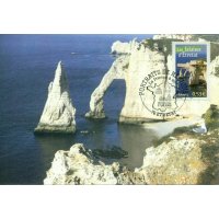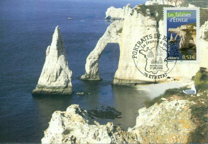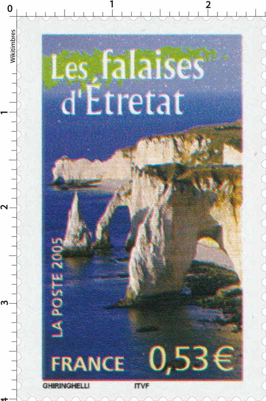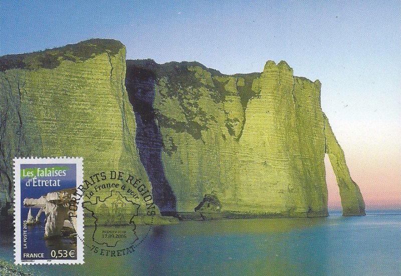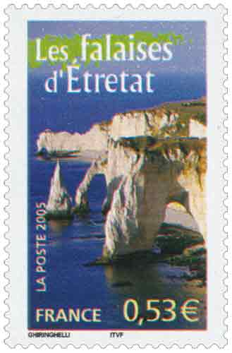 | Description | Les falaises d'Étretat (Seine-Maritime). Du premier au dernier plan : la Manneporte, l'Aval, l'Aiguille et l'Amont |