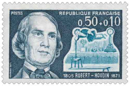 | Commentaire | Le timbre-poste émis le 18 octobre 1971 rend hommage à Jean-Eugène Robert-Houdin (1805-1871), figure fondatrice de la magie moderne, dont l’influence dépasse largement le spectacle pour s’inscrire à la croisée de l’art, de la science et de la technique au XIXe siècle. Né à Blois dans une famille d’horlogers, Robert-Houdin développe très tôt une maîtrise remarquable de la mécanique de précision, de l’optique et de l’électricité, qu’il mettra au service d’une conception entièrement renouvelée de l’illusion. Rompant avec les codes théâtraux hérités des bonimenteurs et des figures pseudo-occultes, il impose une esthétique sobre et élégante, se présentant en habit de ville et revendiquant une magie fondée sur l’ingéniosité humaine plutôt que sur le mystère surnaturel. Cette démarche trouve son aboutissement dans l’ouverture, en 1845, de son théâtre d’illusions au Palais-Royal, où automates, effets mécaniques et mises en scène savamment réglées contribuent à transformer l’art magique en un véritable spectacle bourgeois, rationnel et moderne. Parallèlement à sa carrière scénique, Robert-Houdin se distingue comme inventeur prolifique, déposant ou expérimentant des dispositifs aussi variés qu’un compteur kilométrique, un avertisseur d’incendie, des instruments d’ophtalmologie comme le pupillomètre, ou encore un plastron électrique pour l’escrime, préfigurant l’usage sportif de l’électricité. Certaines sources lui attribuent même des expérimentations précoces autour de l’éclairage électrique, soulignant la perméabilité constante entre ses recherches scientifiques et ses créations illusionnistes. La figurine gravée par Jean Pheulpin associe son portrait à la représentation de la « suspension éthéréenne », illusion emblématique illustrant parfaitement cette alliance entre rigueur technique et poésie visuelle. En choisissant de consacrer un timbre surtaxé à Robert-Houdin, la Poste française inscrit son œuvre dans une double tradition philatélique : celle de l’hommage aux grandes figures culturelles et celle de la solidarité, la surtaxe étant destinée à la Croix-Rouge française. Ce timbre souligne ainsi la portée durable d’un créateur qui, en rationalisant l’illusion, a donné naissance à une magie moderne fondée sur l’intelligence, l’innovation et le respect du public. Article rédigé pour WikiTimbres |