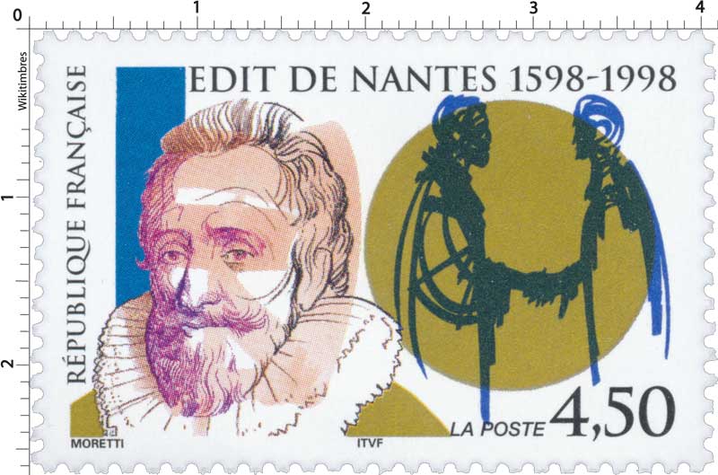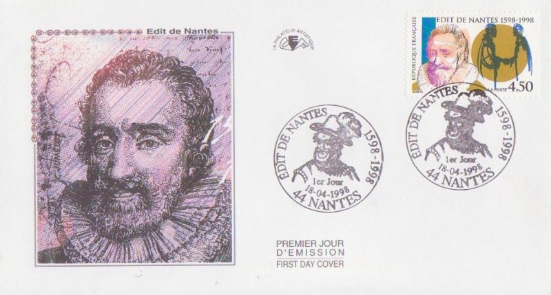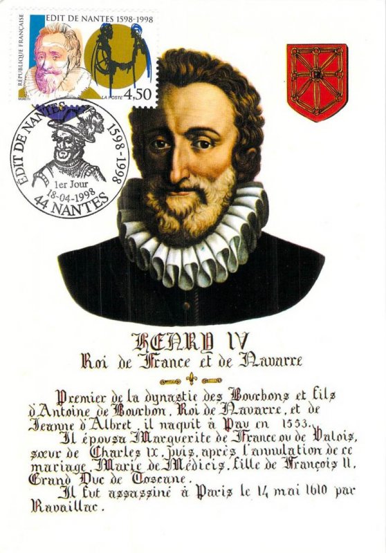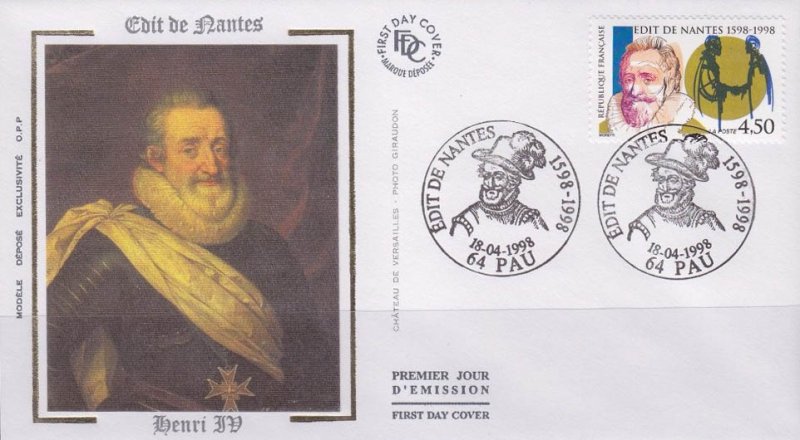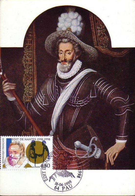 | Description | 400e anniversaire de la signature de l'Édit de Nantes (1598-1998), représentation du roi Henri IV (1553-1610), né à Pau |