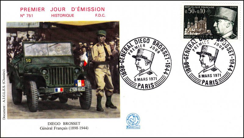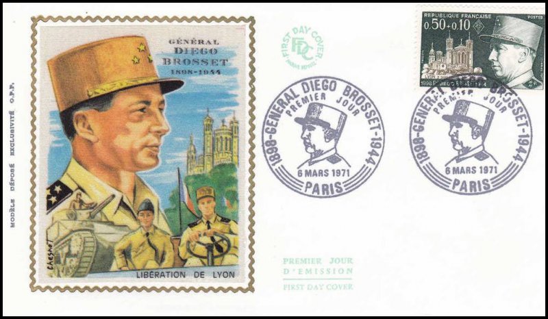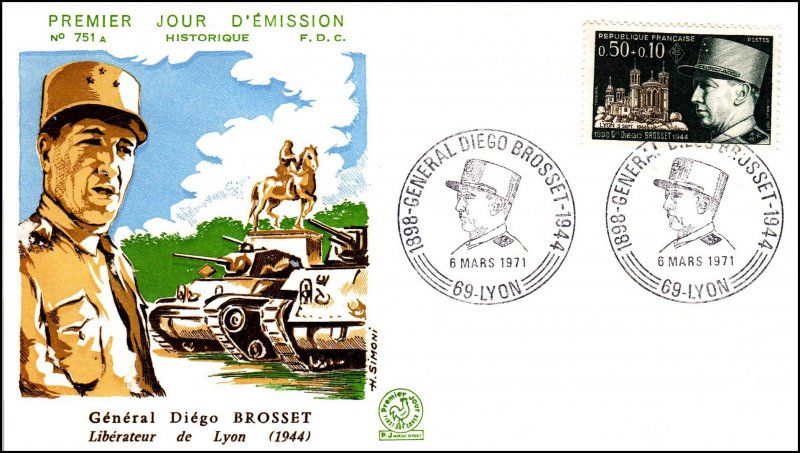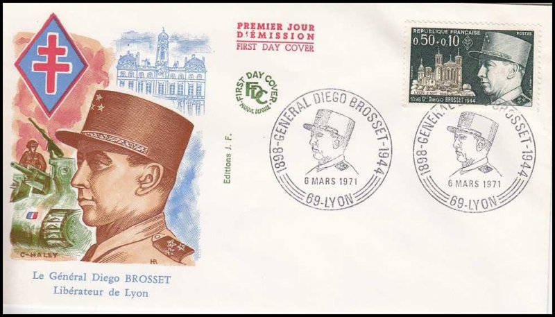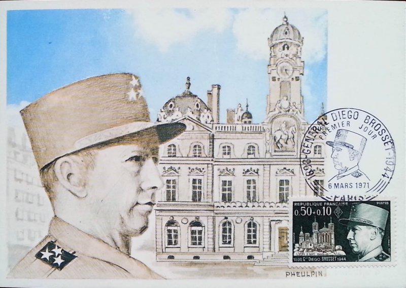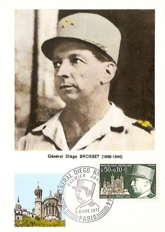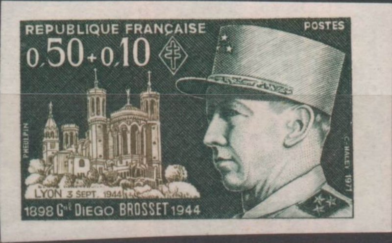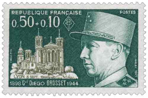 | Description | Général Diégo Brosset (1898-1944), mort à Champagney et inhumé dans la nécropole nationale de Rougemont dans le Doubs, et représentation de la basilique Notre-Dame de Fourvière, car il libère Lyon le 3 septembre 1944 |