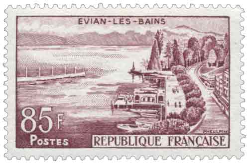 | Commentaire | Le timbre gommé émis en France en 1959 consacré à Évian-les-Bains appartient à la série dite « touristique » d’usage courant, destinée à diffuser par le courrier quotidien l’image de sites et stations emblématiques du territoire. Mis en vente à partir du 12 février 1959 après un premier jour organisé à Paris le 10 février, ce timbre horizontal de 85 francs répond à des usages postaux précis, notamment l’affranchissement de la lettre recommandée au premier échelon de poids ainsi que celui des lettres jusqu’à 200 grammes pour le régime intérieur, ce qui explique sa valeur faciale élevée. Dessiné et gravé en taille-douce par Jean Pheulpin, il représente la station thermale d’Évian-les-Bains, située sur les rives du lac Léman, dont la renommée repose depuis le XIXᵉ siècle sur ses établissements de cure et son cadre naturel entre lac et montagnes. L’impression en taille-douce rotative, procédé privilégié pour les figurines de grande diffusion de la fin des années 1950, associe une iconographie soignée à une fonction postale utilitaire. Par son intégration dans la série touristique, ce timbre participe à la promotion d’un patrimoine à la fois naturel et thermal, illustrant la place d’Évian dans l’imaginaire collectif comme centre de villégiature et de santé, tout en inscrivant cette représentation dans la continuité des grandes séries d’usage courant françaises de l’après-guerre. |