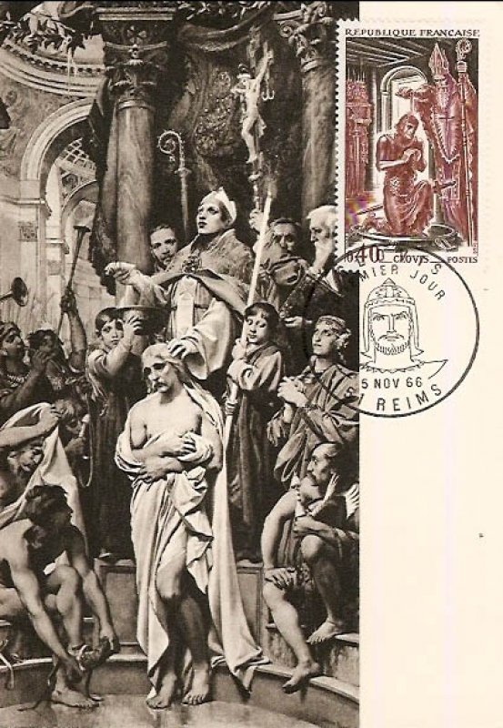 | Description | Baptême de Clovis (465-511) par l'évêque Remi à Reims en 498 |