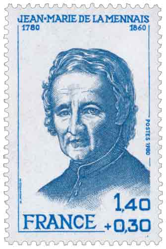 | Commentaire | Ce timbre commémore le bicentenaire de la naissance de Jean-Marie de La Mennais, prêtre breton né à Saint-Malo en 1780 et mort à Ploërmel en 1860, figure majeure du renouveau de l’enseignement chrétien au XIXᵉ siècle. Frère aîné de Félicité de Lamennais, il partage avec lui une formation religieuse marquée par les bouleversements de la Révolution, mais suit une voie différente, centrée sur l’action éducative et pastorale. Ordonné prêtre, il est rapidement confronté à la dégradation profonde de l’instruction populaire en Bretagne, conséquence directe des suppressions d’écoles et des confiscations de biens ecclésiastiques. Convaincu que l’éducation constitue un fondement essentiel de l’ordre social et religieux, il entreprend la création d’établissements scolaires nouveaux et fonde plusieurs congrégations enseignantes, parmi lesquelles les Filles de la Providence de Saint-Brieuc et les Frères de l’Instruction chrétienne de Ploërmel. Son activité l’amène à parcourir sans relâche les routes de Bretagne afin de visiter les communautés, organiser la formation des maîtres et assurer la pérennité des œuvres. Malgré les crises traversées par l’Église au XIXᵉ siècle et les conséquences ultérieures des lois de sécularisation, les congrégations issues de son action poursuivent leur mission en Europe et dans le monde. Ce timbre s’inscrit dans la politique commémorative française consacrée aux grandes figures religieuses et éducatives, en mettant en lumière un acteur souvent moins connu du grand public mais déterminant pour l’histoire de l’enseignement. L’émission accompagne également la reconnaissance spirituelle de Jean-Marie de La Mennais, dont la cause de béatification a été introduite au début du XXᵉ siècle et officiellement soutenue par l’Église catholique. Article rédigé pour WikiTimbres |