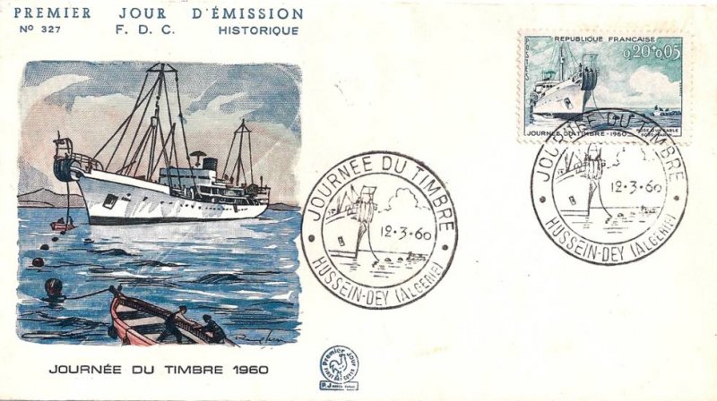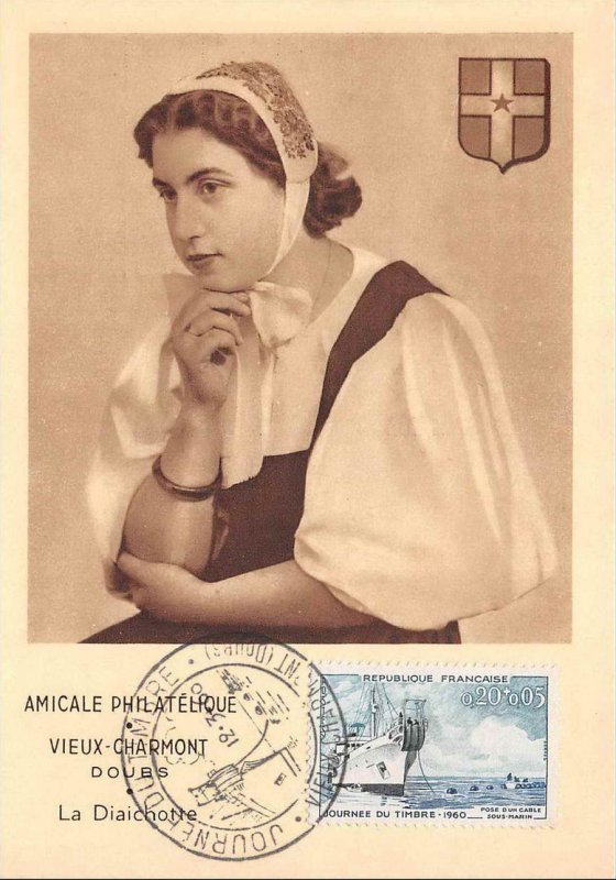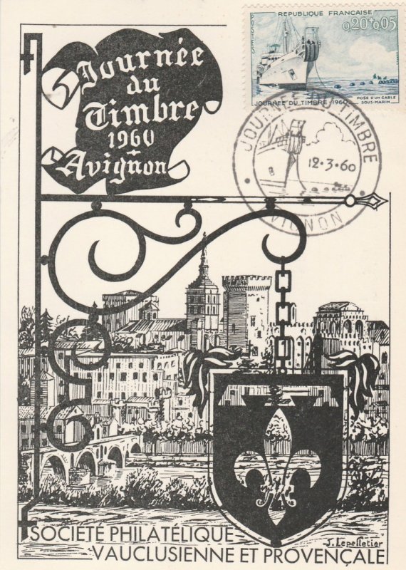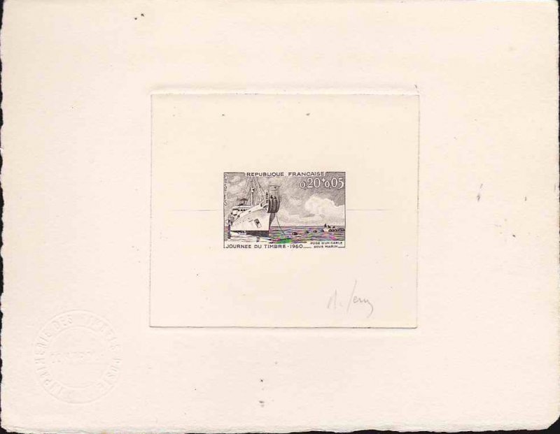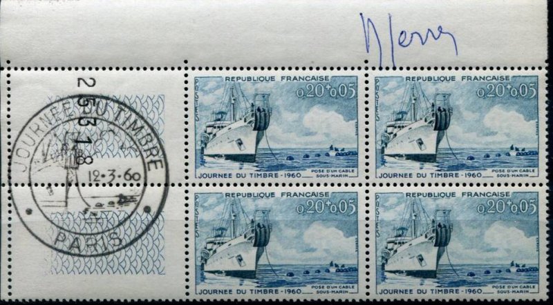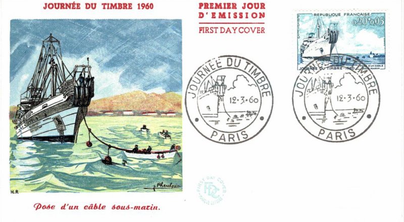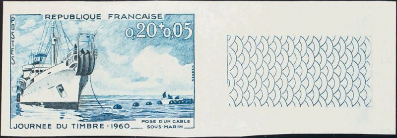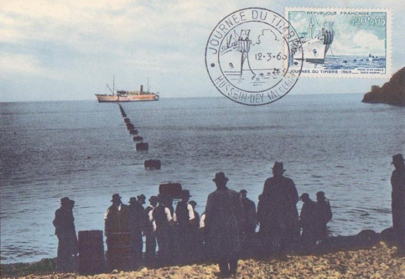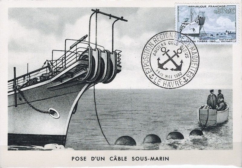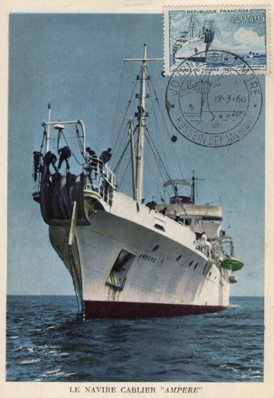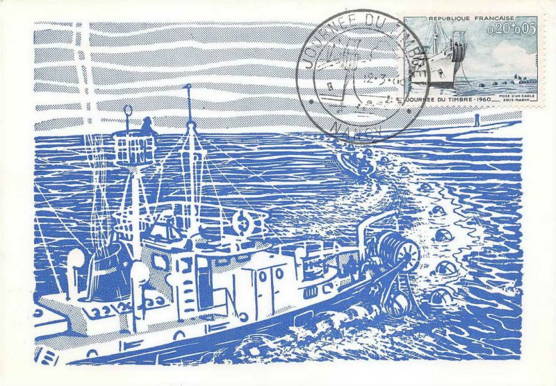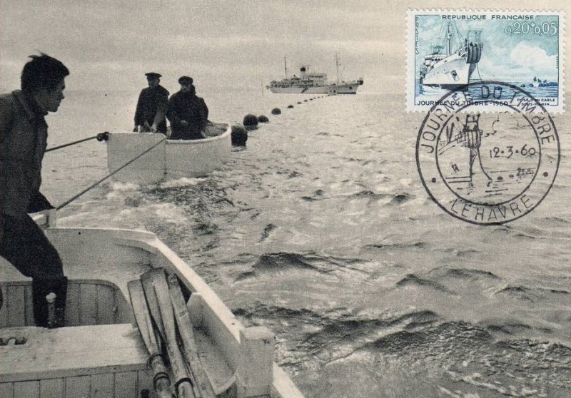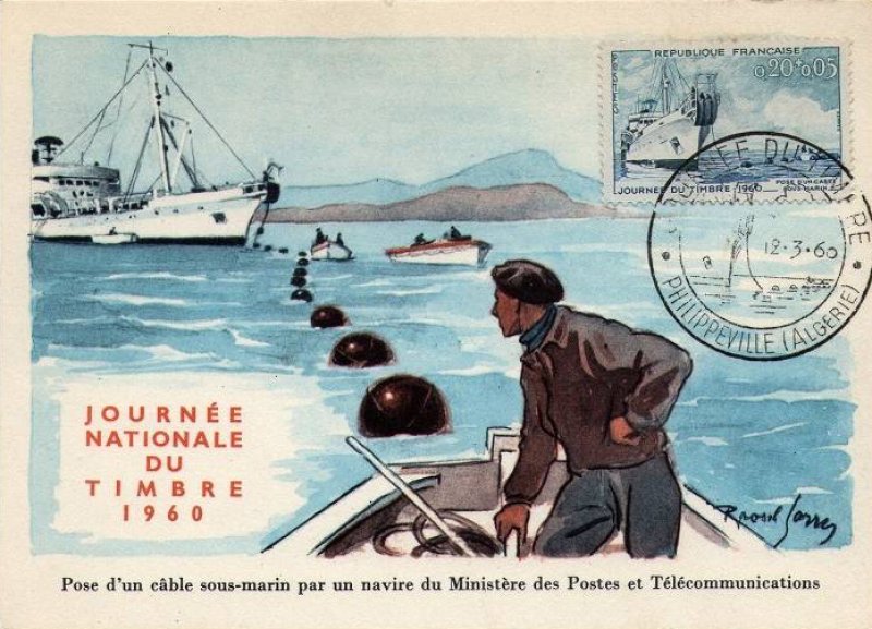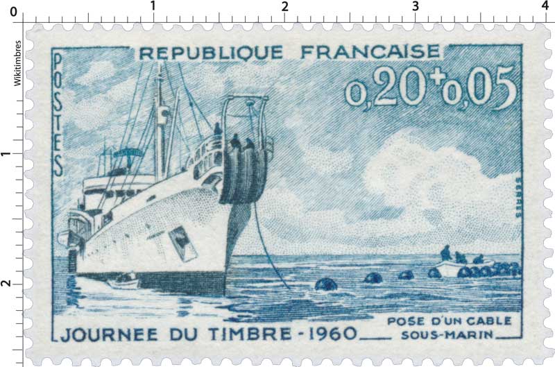 | Description | Journée du timbre 1960. Pose d'un câble sous-marin par le navire-câblier Ampère |