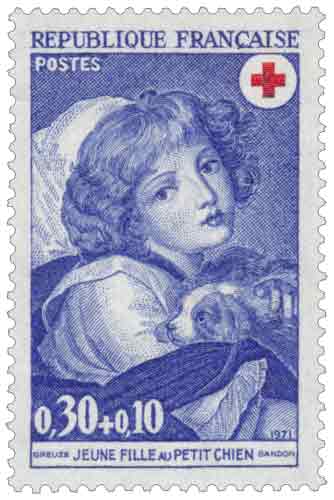 | Description | Au profit de la Croix-Rouge française. La jeune fille au petit chien, œuvre de Jean Baptiste Greuze (1725-1805), né à Tournus |