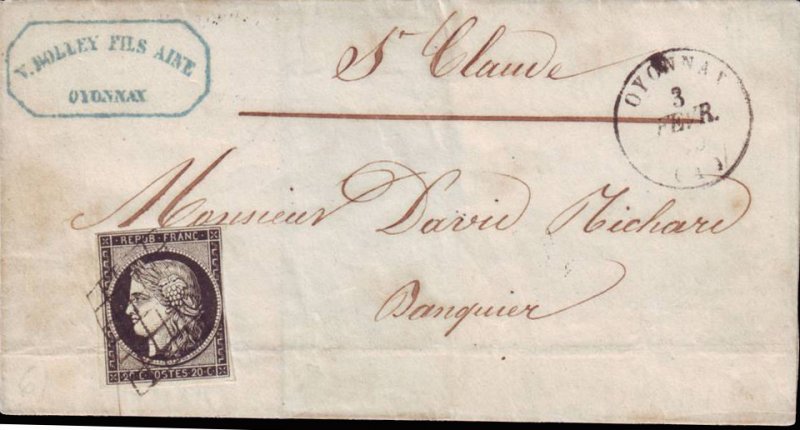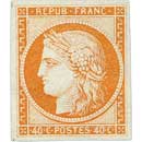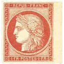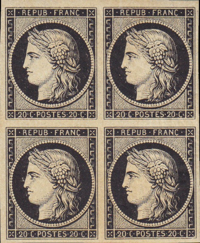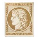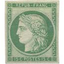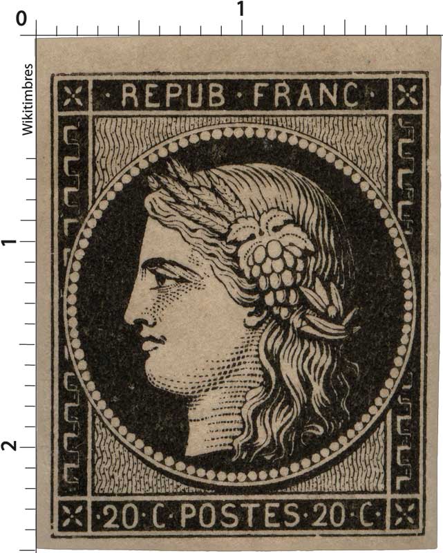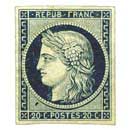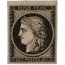 | Commentaire | Cérès - IIème République. Premier timbre-poste français Voir la vidéo "Histoires de timbres" En savoir plus sur Wikipédia : Cérès Émis le 1ᵉʳ janvier 1849, le 20 centimes noir au type Cérès est le premier timbre-poste de France, lancé à l’initiative du directeur général des Postes, Étienne Arago, dans le cadre de la réforme postale issue du décret du 24 août 1848. Cette réforme introduit un tarif simplifié basé uniquement sur le poids du pli, encourageant le prépaiement de l’affranchissement par l’expéditeur. Sa valeur de 20 centimes correspond au tarif général « bureau à bureau » pour les lettres de moins de 7,5 grammes circulant entre deux circonscriptions postales en France, Corse et Algérie. Ce timbre inaugure également l’usage du préaffranchissement dans le service postal français. Le dessin, adopté après concours, est l’œuvre de Jacques-Jean Barre, Graveur général des Monnaies. Il représente Cérès, allégorie républicaine, figurée sous les traits d’une femme coiffée d’attributs agricoles. La matrice, conçue pour l’ensemble de la série Cérès, porte deux logements destinés à recevoir les goujons amovibles indiquant la valeur faciale. Retiré de la vente le 29 octobre 1850, trois mois après le changement tarifaire du 1ᵉʳ juillet 1850 qui supprime son usage principal, le 20 c noir connaît un tirage très important et constitue la pierre angulaire des débuts de la philatélie française. Sa période d’impression continue de décembre 1848 à février 1849, décrite dans les sources historiques, explique la diversité de nuances et de papiers rencontrés. |