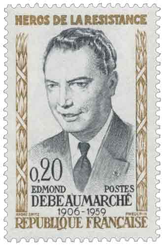 | Commentaire | Le timbre « Héros de la Résistance – Edmond Debeaumarché 1906-1959 », émis par la France en 1960 dans le cadre de la quatrième série consacrée aux figures de la Résistance, s’inscrit dans une politique commémorative visant à rendre hommage, quinze ans après la Libération, aux acteurs civils et administratifs qui ont joué un rôle décisif dans la lutte clandestine contre l’Occupation, en mettant en lumière Edmond Debeaumarché, haut fonctionnaire des Postes et animateur majeur du réseau « Résistance P.T.T. », dont l’action illustre l’importance stratégique des communications dans la guerre moderne, notamment par la préparation du « Plan Violet » destiné à désorganiser les transmissions allemandes au moment du débarquement allié, et dont le parcours, marqué par l’arrestation en août 1944, la déportation à Buchenwald et Dora, puis l’engagement après-guerre en faveur des anciens déportés, symbolise à la fois la continuité de l’État républicain dans la clandestinité et la reconnaissance nationale accordée aux serviteurs de l’administration engagés dans la Résistance, ce que traduit l’iconographie sobre et grave du timbre, caractéristique des émissions françaises de cette période dédiées à la mémoire résistante. Article rédigé pour WikiTimbres |