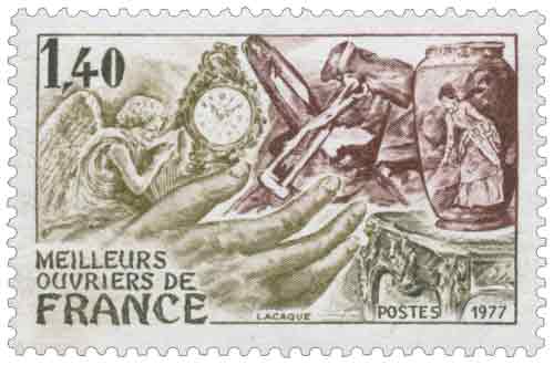 | Commentaire | Ce timbre s’inscrit dans une démarche de reconnaissance institutionnelle du travail manuel et des savoir-faire d’excellence, à une époque où la France cherche à réaffirmer la valeur culturelle, sociale et économique des métiers artisanaux. À travers ce timbre, la Poste française met en lumière le titre de « Meilleur Ouvrier de France », distinction créée dans l’entre-deux-guerres et profondément ancrée dans la tradition des Expositions nationales du travail. Ce sujet reflète une continuité historique reliant les métiers contemporains à un héritage ancien, celui des bâtisseurs, artisans et compagnons qui ont façonné le patrimoine matériel du pays. Le choix de la taille-douce, technique exigeante et emblématique de la philatélie française, renforce symboliquement le propos en établissant un parallèle direct entre la rigueur du geste du graveur et celle de l’ouvrier d’art. Ce timbre traduit également le rôle croissant des Meilleurs Ouvriers de France dans la transmission des compétences, la valorisation de l’ouvrage bien fait et la représentation des métiers manuels dans les instances professionnelles et culturelles. En 1977, cette émission accompagne un contexte de mutation industrielle et sociale, où la maîtrise technique et la qualité du travail deviennent des marqueurs identitaires face à la standardisation croissante des productions. Par son iconographie sobre et son traitement graphique mesuré, ce timbre privilégie la dimension collective et institutionnelle du titre plutôt qu’une personnalisation, soulignant que l’excellence reconnue dépasse l’individu pour incarner une conception française du métier et de la création par la main. Ce timbre participe ainsi pleinement à la politique commémorative de la Poste, en faisant du support postal un vecteur de mémoire et de valorisation du patrimoine immatériel du travail. Article rédigé pour WikiTimbres |