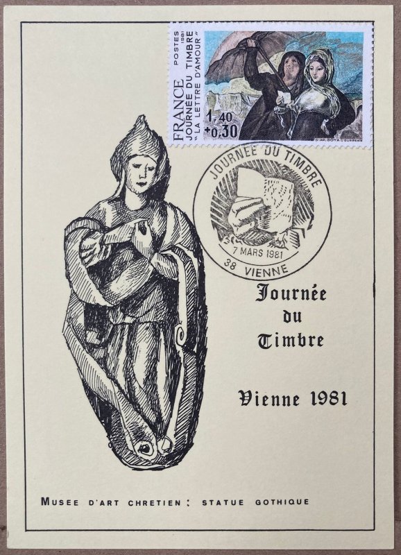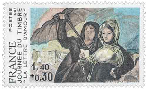| Description | Journée du timbre 1981. La lettre d'amour de Francisco Goya (1746-1828), peintre et graveur espagnol qui mourut à Bordeaux et fut inhumé dans le cimetière des Chartreux |