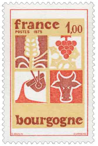 | Commentaire | Émis en 1975 dans la série des régions administratives françaises, le timbre consacré à la Bourgogne accompagne la réforme territoriale engagée au début des années 1970 et vise à affirmer l’identité d’une région structurée autour de Dijon et de la Côte-d’Or, réunissant l’Yonne, la Nièvre et la Saône-et-Loire. La composition du timbre propose une synthèse visuelle et symbolique d’un territoire dont l’histoire s’inscrit dans une profondeur exceptionnelle, depuis les premiers peuplements préhistoriques jusqu’aux grandes constructions politiques et culturelles de l’Europe médiévale. La Bourgogne fut en effet un espace de rencontre des civilisations, marqué par des sites majeurs de l’Antiquité et par l’essor d’un puissant État ducal, dont l’influence s’étendit un temps du bassin rhodanien aux Pays-Bas. Cette mémoire historique se double d’un rayonnement artistique et spirituel durable, illustré par les grands foyers monastiques et les centres de création qui contribuèrent à diffuser l’architecture cistercienne, la sculpture et les arts de cour. Le timbre évoque également les vocations économiques contemporaines de la région, héritières de sa position de carrefour entre le nord et le sud de l’Europe et de la diversité de ses bassins fluviaux. Agriculture céréalière, élevage, viticulture réputée de ses différentes côtes, exploitation forestière et industrie métallurgique ou mécanique composent un tissu économique équilibré, complété par un secteur tertiaire en développement. En inscrivant la Bourgogne dans cette série philatélique, la politique postale française de 1975 met en avant une région à la fois profondément ancrée dans l’histoire nationale et tournée vers l’avenir européen, soulignant la continuité entre héritage culturel, dynamisme économique et organisation territoriale moderne. Article rédigé pour WikiTimbres |
