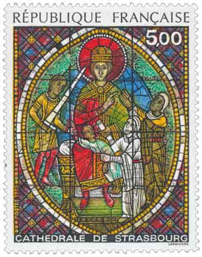 | Commentaire | Cathédrale de Strasbourg, fenêtre droite à de la face nord du transept, vers 1200 Ce timbre met en lumière l’un des vitraux les plus anciens conservés de la cathédrale de Strasbourg, daté d’environ 1200 et situé dans la fenêtre droite de la face nord du transept, témoignage exceptionnel de l’art du vitrail roman dans une ville marquée par une histoire européenne complexe et souvent tourmentée. Le sujet renvoie à l’épisode biblique du Jugement de Salomon, traité dans une composition à médaillons superposés caractéristique des premières verrières monumentales, conçues pour s’inscrire dans des ouvertures encore étroites héritées de l’architecture romane. L’image retenue isole le médaillon central en forme d’amande, correspondant au moment décisif du récit, et illustre la fonction pédagogique du vitrail médiéval, véritable support narratif destiné à transmettre les textes sacrés à une population majoritairement illettrée. La gamme chromatique dominée par les rouges, les jaunes et un vert tendre, ainsi que certains éléments ornementaux comme les listels perlés ou les rinceaux gravés, reflètent à la fois l’influence de l’école rhénane et des apports mosans inspirés de l’orfèvrerie, tandis que la frontalité hiératique de Salomon conserve l’empreinte d’une tradition byzantine persistante. En choisissant ce motif, l’administration postale française inscrit ce timbre dans une politique de valorisation du patrimoine artistique et spirituel, en soulignant le rôle du vitrail comme art de la lumière, conçu pour transformer l’espace sacré au fil des heures et des saisons. Cette émission de 1985 s’inscrit ainsi dans une série de timbres consacrés aux arts et au patrimoine, et a été distinguée par le premier prix de la Conférence des Imprimeurs d’État de Timbres-Poste en 1987, catégorie taille-douce, reconnaissance internationale de la qualité de sa gravure et de son rendu artistique. Article rédigé pour WikiTimbres |