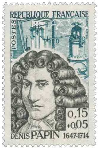 | Commentaire | Erreur sur la date de sa mort : à Londres le 26 août 1713. Émis en 1962, ce timbre consacré à Denis Papin s’inscrit dans une double logique commémorative et solidaire, en rendant hommage à une figure majeure de l’histoire des sciences tout en étant grevé d’une surtaxe au profit de la Croix-Rouge française, pratique alors fréquente dans la politique postale française. Le choix de Papin illustre la volonté de rappeler le rôle fondamental des savants du XVIIᵉ siècle dans l’émergence de la civilisation industrielle moderne, à travers l’invention et l’expérimentation scientifique. Médecin de formation devenu physicien et ingénieur, Papin incarne cette génération de chercheurs pour lesquels l’observation, l’expérience et la mécanique ouvraient de nouvelles perspectives techniques, notamment dans l’étude de la vapeur et de la pression. Son célèbre « digesteur », connu sous le nom de marmite de Papin, symbolise cette étape décisive où la maîtrise de la vapeur permet d’envisager la transformation de l’énergie thermique en force motrice, annonçant les développements ultérieurs de la machine à vapeur. L’iconographie du timbre associe le portrait du savant à la représentation de cet appareil emblématique, conservé aujourd’hui au Musée des Arts et Métiers, traduisant visuellement le lien entre la pensée scientifique et ses applications concrètes. En 1962, au moment où la France valorise son patrimoine scientifique et technique, ce timbre rappelle que l’essor industriel repose sur des intuitions et des travaux parfois restés longtemps méconnus, et inscrit Denis Papin dans la lignée des inventeurs dont les idées ont façonné durablement le monde moderne. Article rédigé pour WikiTimbres |